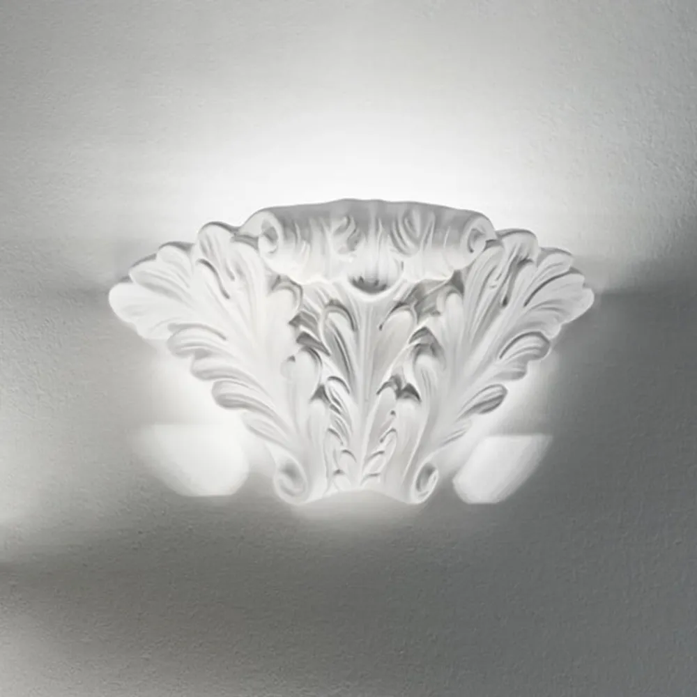 Væglampen med nobelt stuk-look passer til stort set alle rum i hjemmet. Med den smukke form og stukstruktur giver Rokoko lampen hjemmet et herskabeligt præg. Det bløde lys er opadrettet. Lampen kan bemales efter ønske, så den passer til interiøret.
