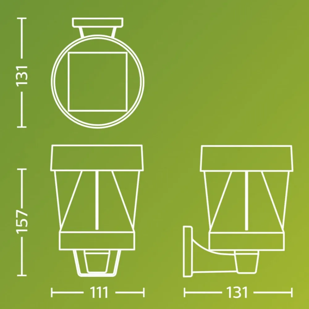 Den solcelledrevne udendørs LED-væglampe Avery er fremstillet af højkvalitetsplast og er designet til at fungere pålideligt under alle vejrforhold. Den indbyggede dagslyssensor tænder automatisk ved skumring og udsender et varmhvidt lys.