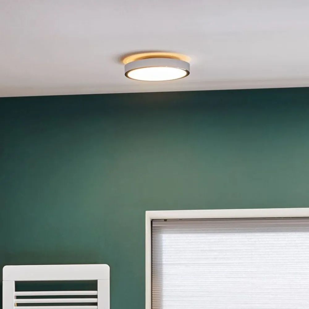 Kabinettet på loftlampen Aviar består af plast og er derfor særlig slidstærkt og nemt at pleje. Kromlooket virker elegant og gør den ellers ret enkle lampe til et vaskeægte blikfang. Indeni sidder et LED-modul, der oplyser hele rummet i et behageligt, varmhvidt lysskær. Loftlampen er udstyret med kapslingsklasse IP44 og er beskyttet mod stænkvand. Den er derfor perfekt som belysningselement på badeværelset. Her kan du montere Aviar enten i loftet eller på væggen.