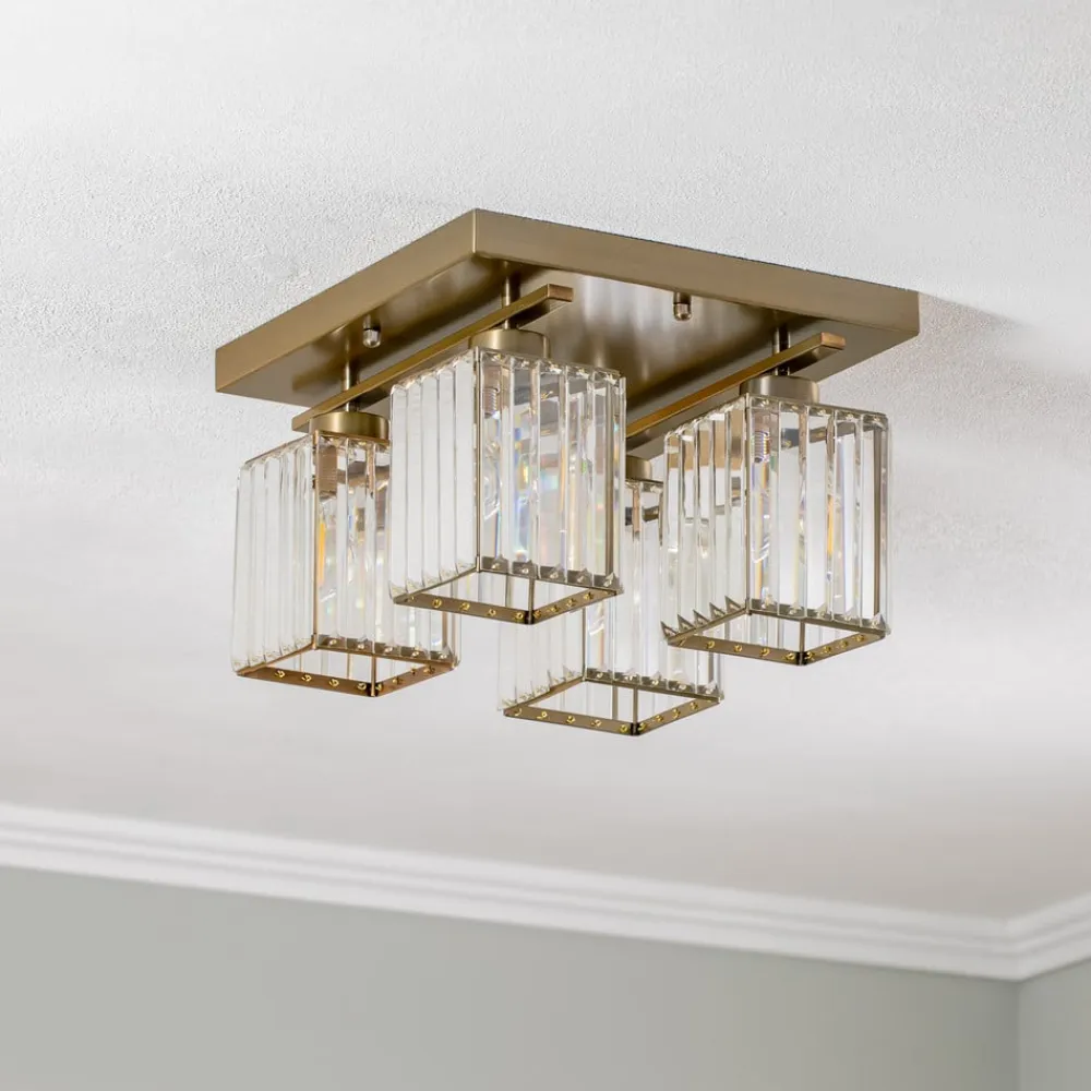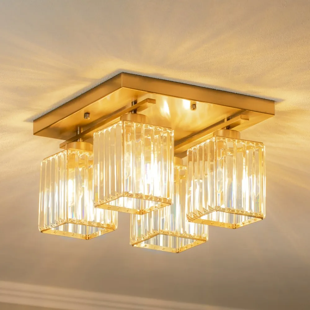 Loftlampen AV-1795-4E kombinerer elegant design med funktionel belysning og bliver dermed et highlight i ethvert rum. Den er fremstillet af højkvalitets jern og krystalglas og stråler i en tiltalende antik guldfinish, der suppleres af transparente elementer. Denne kombination giver lampen en tidløs elegance, der sætter accenter i både stuen, gangen og soveværelset.
