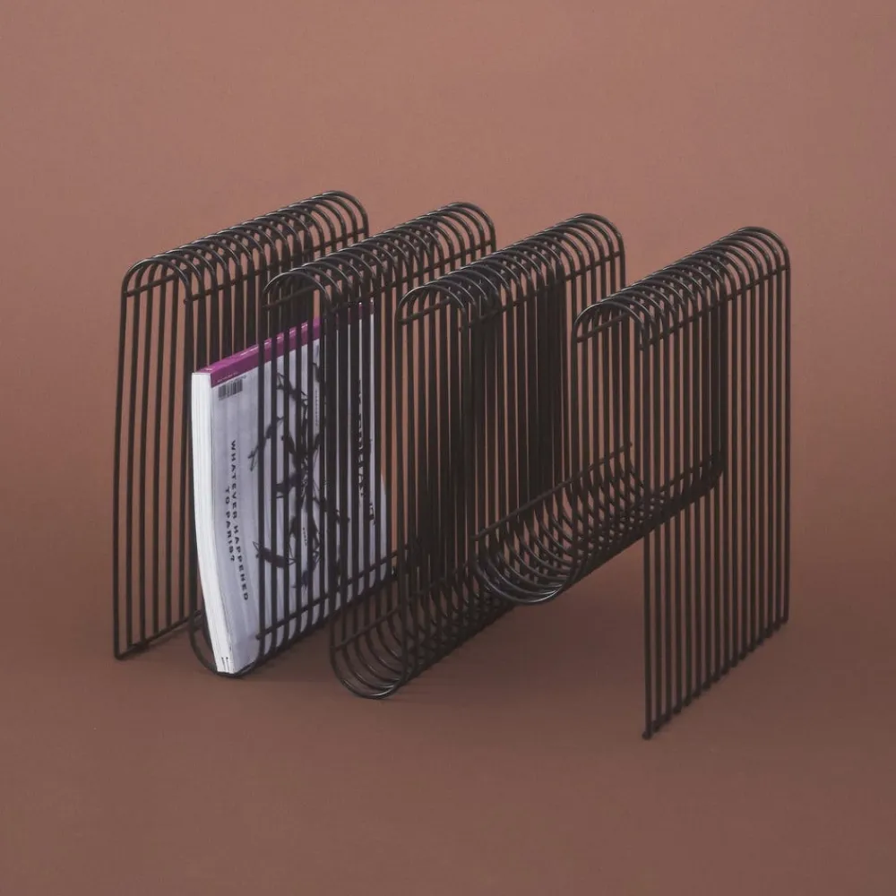 Curva magasinholder i stål Designet af Curva magasinholder er blevet et øjeblikkeligt ikon. Den perfekte kombination af form og funktion er hemmeligheden bag dette designs succes. Magasinholderen blev hædret med “Lifestyle Award” i 2018 og er fremstillet af 100 % stål. Produktinformation: Fremstillet af 100 % stål. Plejeanvisning: Brug en fugtig klud med varmt vand og et mildt rengøringsmiddel til at fjerne snavs og støv. Tør om nødvendigt genstanden af med en blød, tør klud. Undgå at ridse med en skureklud, da det kan beskadige overfladen.
