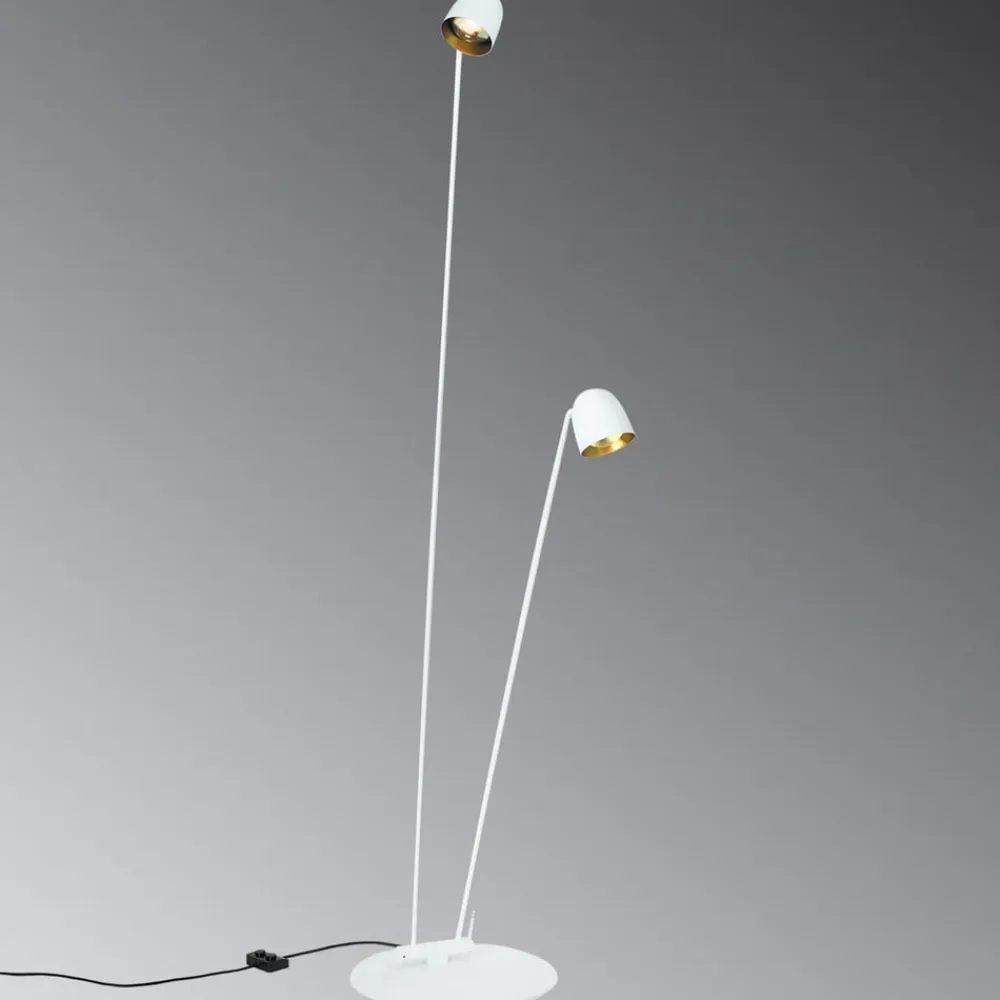 LED-gulvlampe Speers F med to lamper – fleksibelt justerbarSpeers F overbeviser ikke kun med sit diskrete design, der med sit puristiske look udstråler en tidløst elegant flair, men også med sin fleksibilitet med hensyn til funktionalitet. Fra den runde base stikker to stelstænger i forskellige højder ud i rummet. Disse er udstyret med fleksibelt justerbare armaturhoveder. Som lyskilder er der installeret lysstærke LED’er, hvis lys er fokuseret af en glaslinse. Speers LED-gulvlampe er et produkt fra den spanske belysningsproducent B.Lux, designet stammer fra den kreative direktør David Abad, der beriger sine færdigheder som designer med sine tværfaglige kompetencer som ingeniør og derfor nærmer sig sit arbejde ud fra et realistisk perspektiv uden at miste æstetik og funktionalitet af syne. Hans design har allerede vundet mange priser, bl.a. Red Dot Award, iF Design Award og German Designer Award.