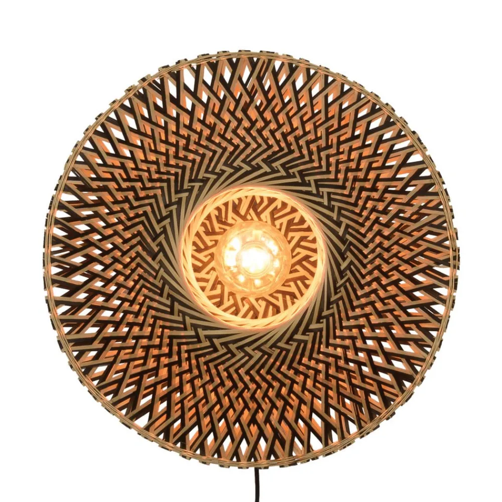 Rund bambus væglampe Bali med afbryder