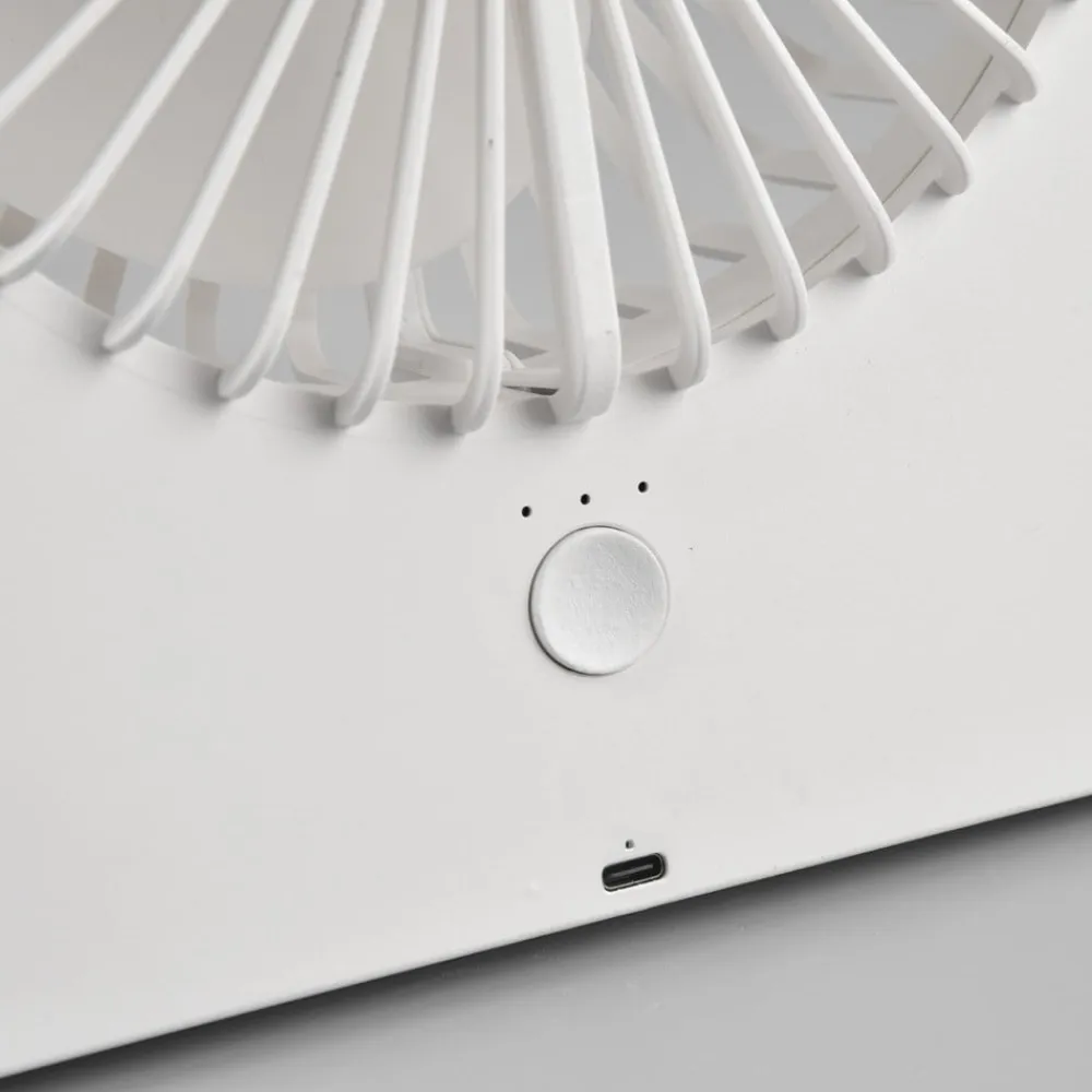 Der medfølger et USB-C-opladerkabel, som kan bruges til at oplade bordventilatorens batteri.