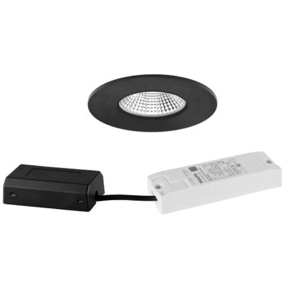 LED-indbygningsdownlight BB20 DALI-dæmpbar driver og tilslutningsboks, IP65 LED-indbygningsdownlighten BB20 leveres med en DALI-dæmpbar LED-driver og en 5-polet tilslutningsboks til gennemfortrådning. Med IP65-beskyttelse er den støvtæt og beskyttet mod vandstråler, hvilket gør den perfekt til belysning af wellness-områder eller andre fugtige områder i den kommercielle sektor. Det varmhvide lys fra de indbyggede LED’er afgives optimalt med en udstrålingsvinkel på 36° af den rotationssymmetriske sølvreflektor med dyb lysfordeling og transparent plastafdækning. Takket være installationsfjedrene kan indbygningsspotlampen monteres uden brug af værktøj. Den kan installeres i lofter med en tykkelse på op til 1,7 cm – inkluderer elektronisk kontroludstyr, DALI-2-dæmpbar – tilladt omgivelsestemperatur – 20 til 25 °C – må ikke dækkes med varmeisolerende materiale – høj beskyttelsesgrad IP65