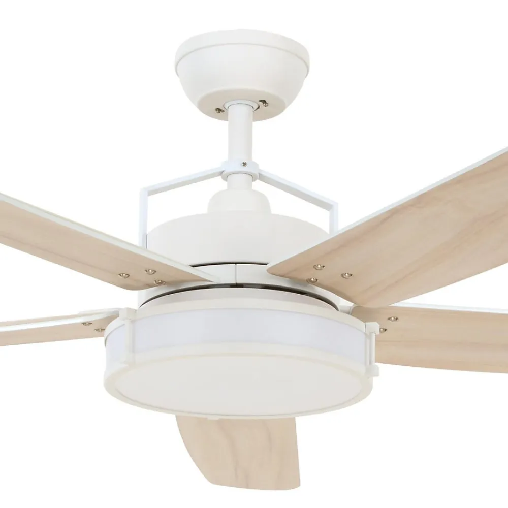 Et hvidlakeret metalhus danner basis for LED-loftventilator Louisville. Den indeholder en moderne DC-motor, der kan køre på forskellige hastighedstrin. Betjeningen foregår via den medfølgende fjernbetjening (inkl. 2 x AAA 1,5V batterier), som også kan bruges til at skifte mellem sommer- og vinterfunktion.