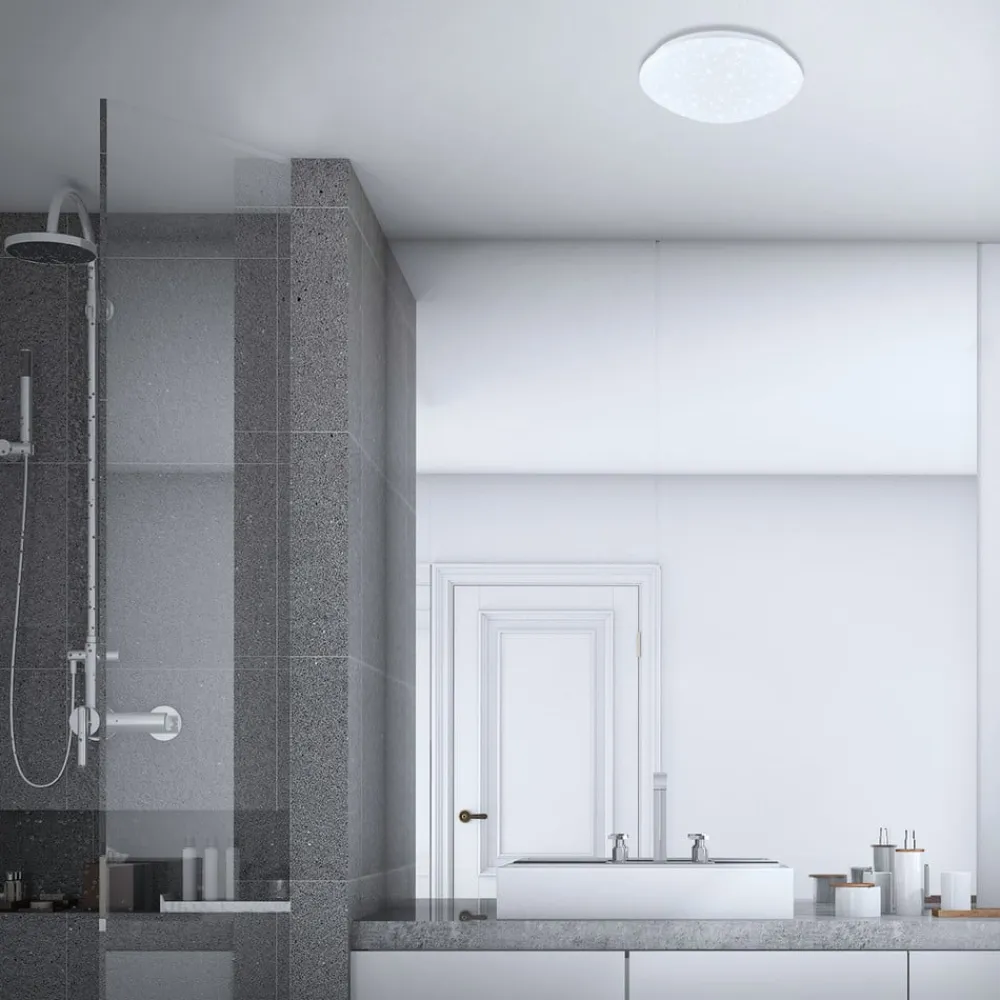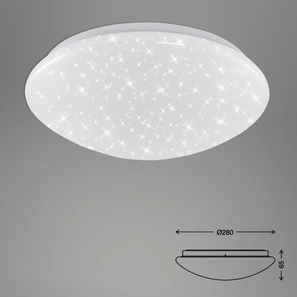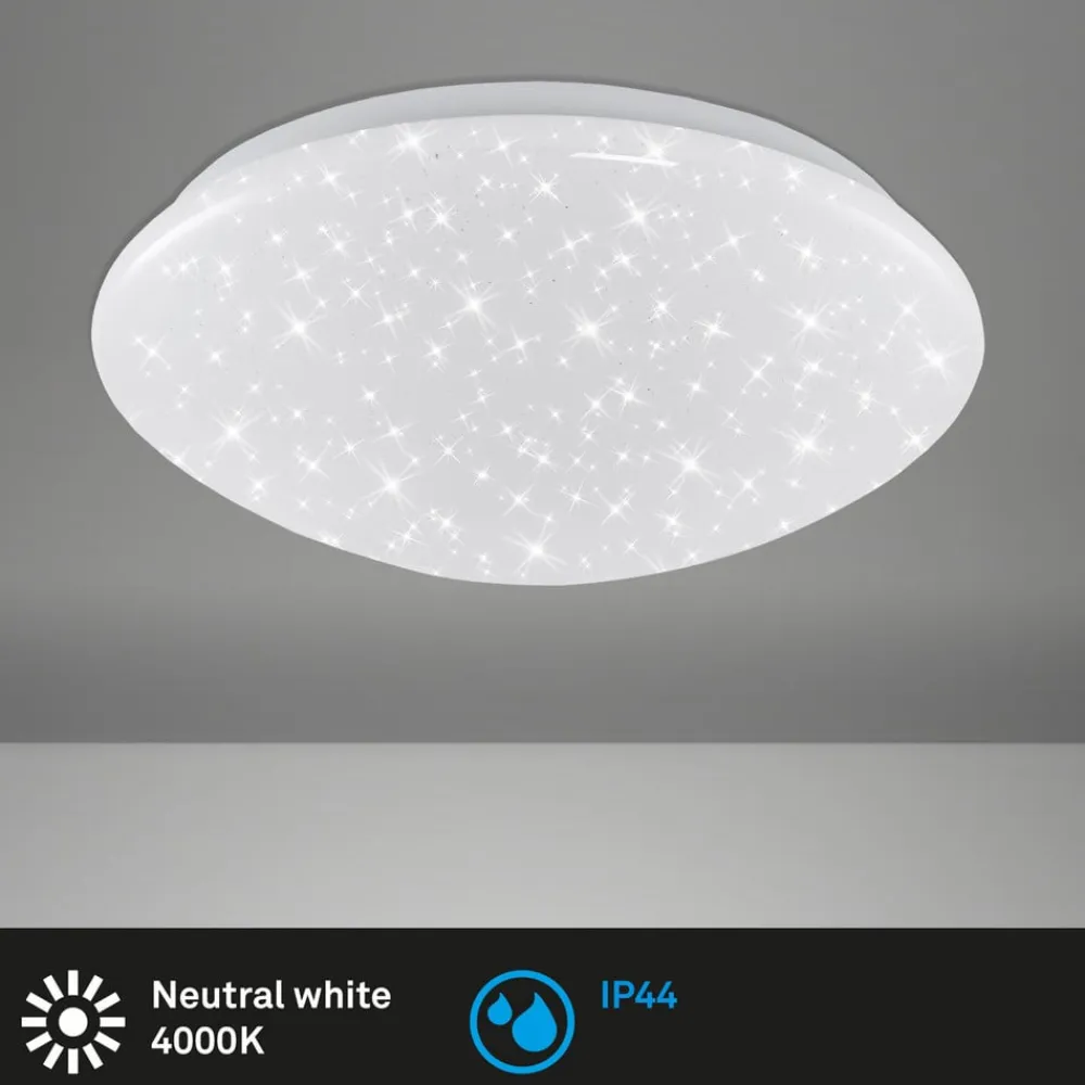 Rund LED-loftslampe Elipso, IP44, universal hvid lysfordeling, med stjernehimmel-effektI mange miljøer fra entreen til badeværelset giver LED-loftslampen Elipso ikke kun effektiv almenbelysning, men også en dekorativ stjernehimmel-effekt. Det runde, konvekse plastdæksel sikrer en bred spredning af det universelle hvide lys og er også forsynet med mange små åbninger, der skaber en dekorativ gnist.- Beskyttelsesklasse: IP44