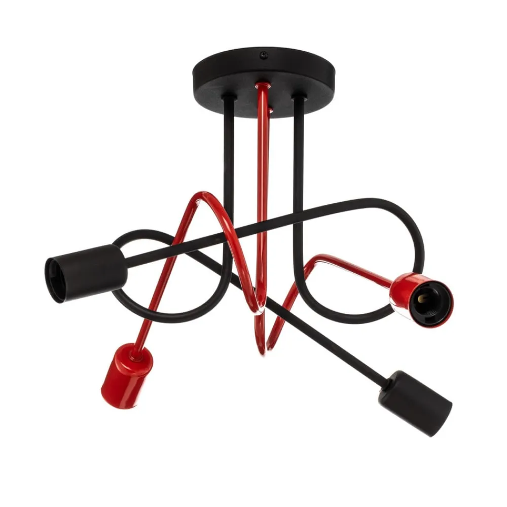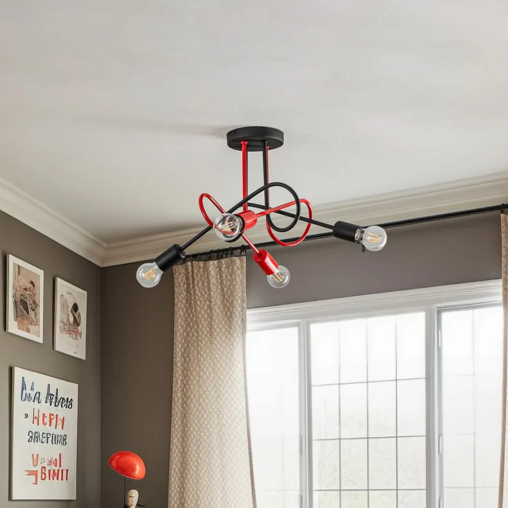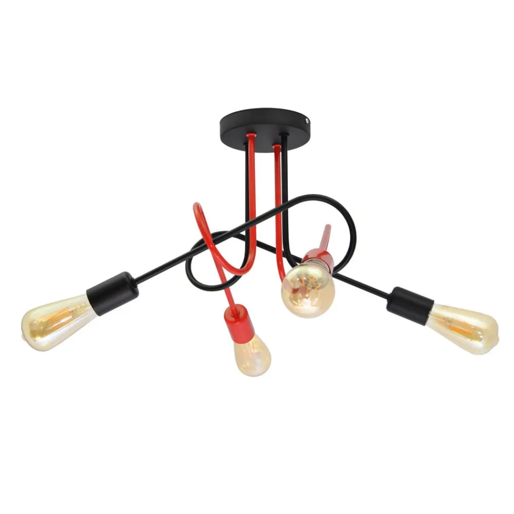 4-light Cambridge loftslampe i sort og rødt