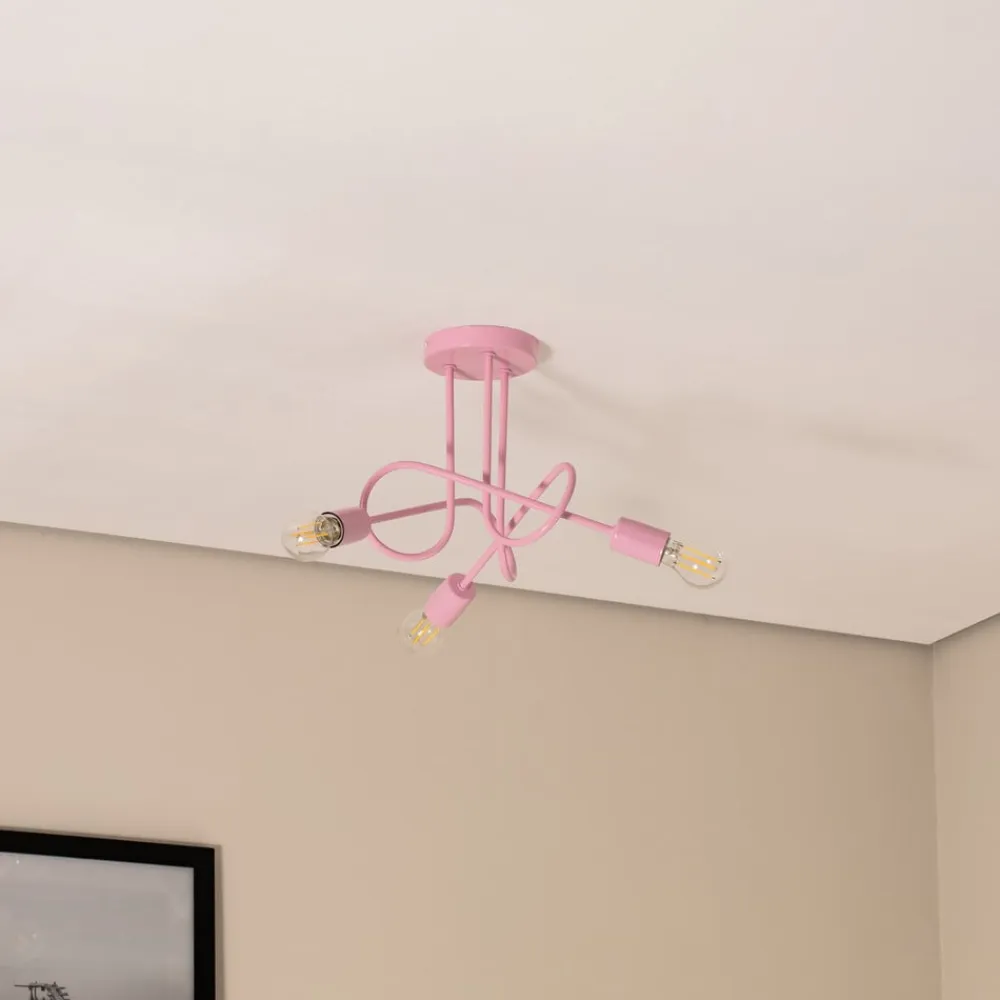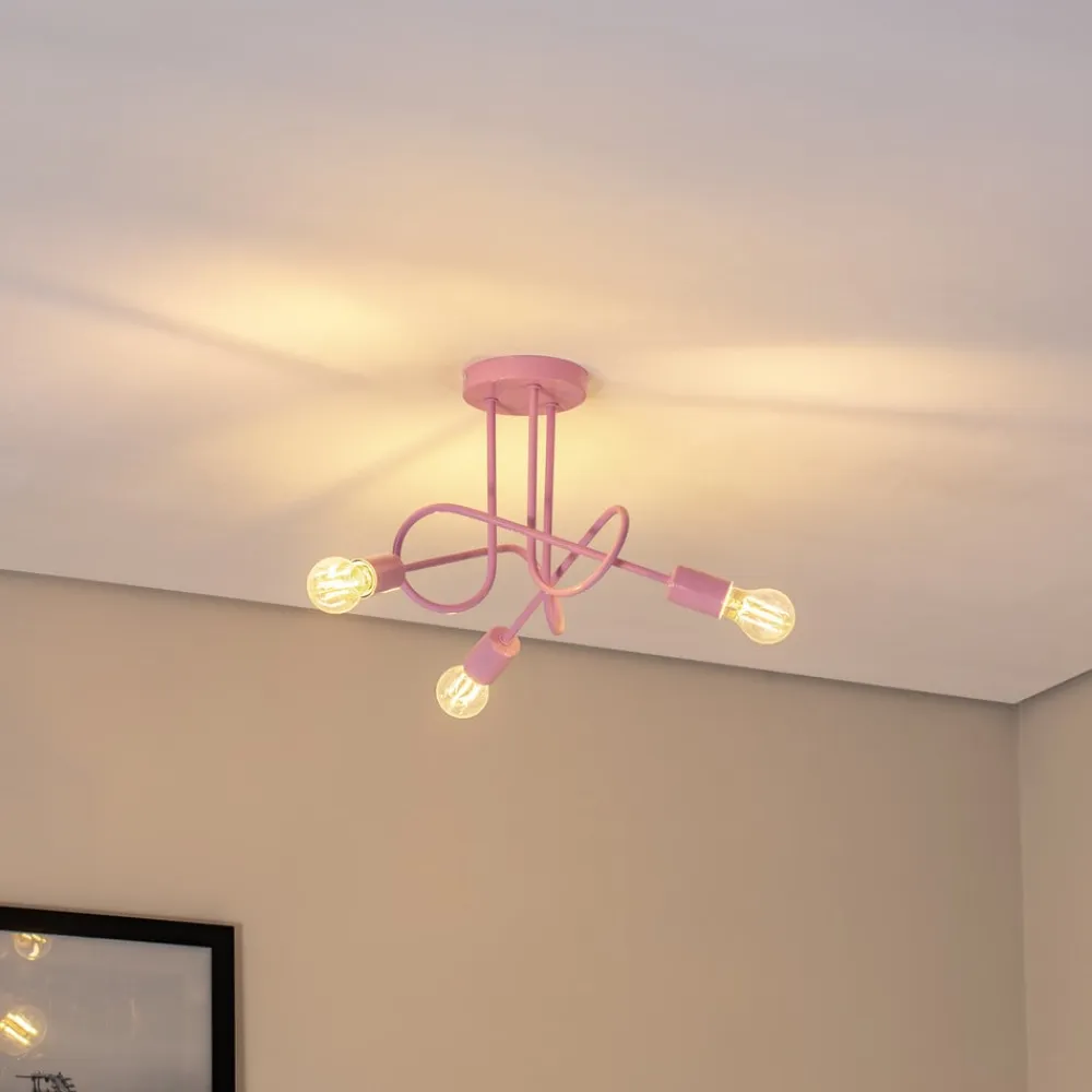 3 lyskilder Oxford loftlampe i lyserød Oxford loftlampen i metal kombinerer stilfuldt design med funktionel belysning. De tre lampearme strækker sig nedad fra den runde baldakin ud i rummet og fletter sig sammen som en løs knude. Oxford-loftlampen er udstyret med en standardiseret E27-fatning, så LED-loftlampen nemt kan udskiftes, hvilket bidrager til et effektivt energiforbrug. Den robuste metalkonstruktion sikrer holdbarhed og passer harmonisk ind i forskellige indretningsstile. Oxford loftlampen er derfor et ideelt valg for dem, der værdsætter kvalitet og æstetisk variation.