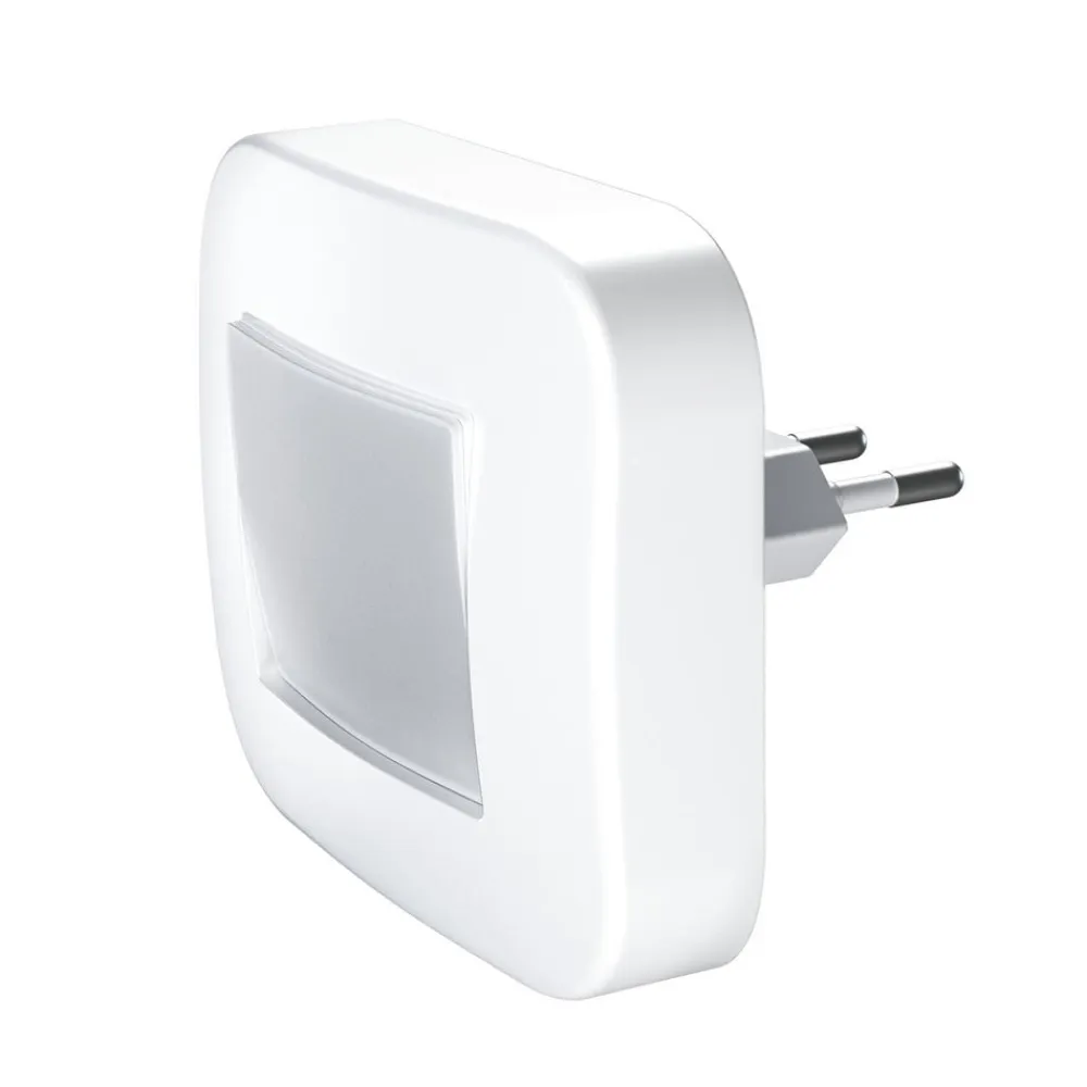 LED-natlys Lunetta Hall White med sensorstyring og justerbar lysafgivelseNatlys Lunetta Hall White af hvidt polycarbonat betjenes ganske enkelt via en stikkontakt og kan derfor anvendes mange steder i tørre indendørs områder til varm hvid orienteringsbelysning. Området med lysudstråling kan vippes for at justere strålingsorienteringen efter behov. Takket være den integrerede lysstyrkesensor tændes LED-natlampen automatisk, når mørket falder på, og slukker igen ved daggry.