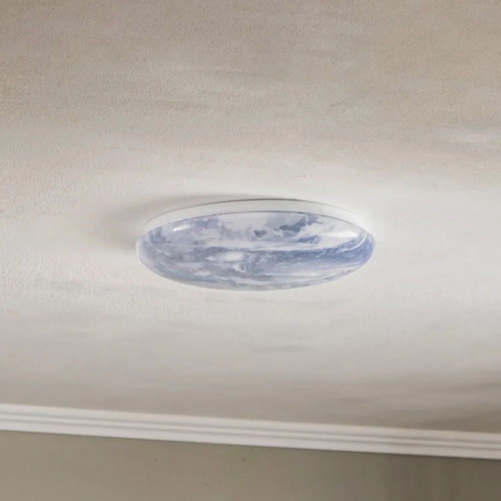 Rund LED-loftslampe med jordprint Orbi LED-loftslampen er et særligt designelement. Den runde plastikdiffusor har et jordprint, som får den til at se ud som en glødende kugle i loftet. Den er ellers alsidig og giver energieffektivt, praktisk lys i ethvert rum.