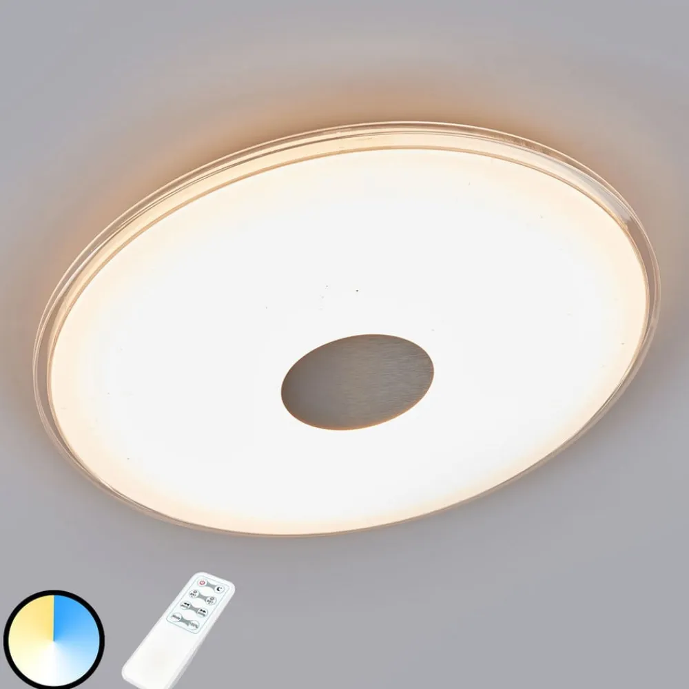 LED-loftlampen Shogun er indbegrebet af en multifunktionel loftlampe med et fantastisk udseende. Den tilbyder de rigtige værktøjer til dag og nat, for at skabe glæde ved produktet og belysningen. Med fjernbetjeningen, som medfølger ved levering, kan der vælges lysfarve i området fra varmhvid til dagslys, og desuden kan lyset også dæmpes. Derudover kan der vælges en natlampefunktion, der simulerer en stjernehimmel. Shogun er dog ikke bare overbevisende med det samme på grund af sin fleksibilitet – og udseendemæssigt er der heller ikke noget at lægge skjul på: Med en meget moderne cirkelform og en satineret hvid farve fortryller lampeskærmen, der består af plast, når lampen er tændt. Derudover sikrer små, transparente åbninger i skærmen for en imponerende glimmereffekt.