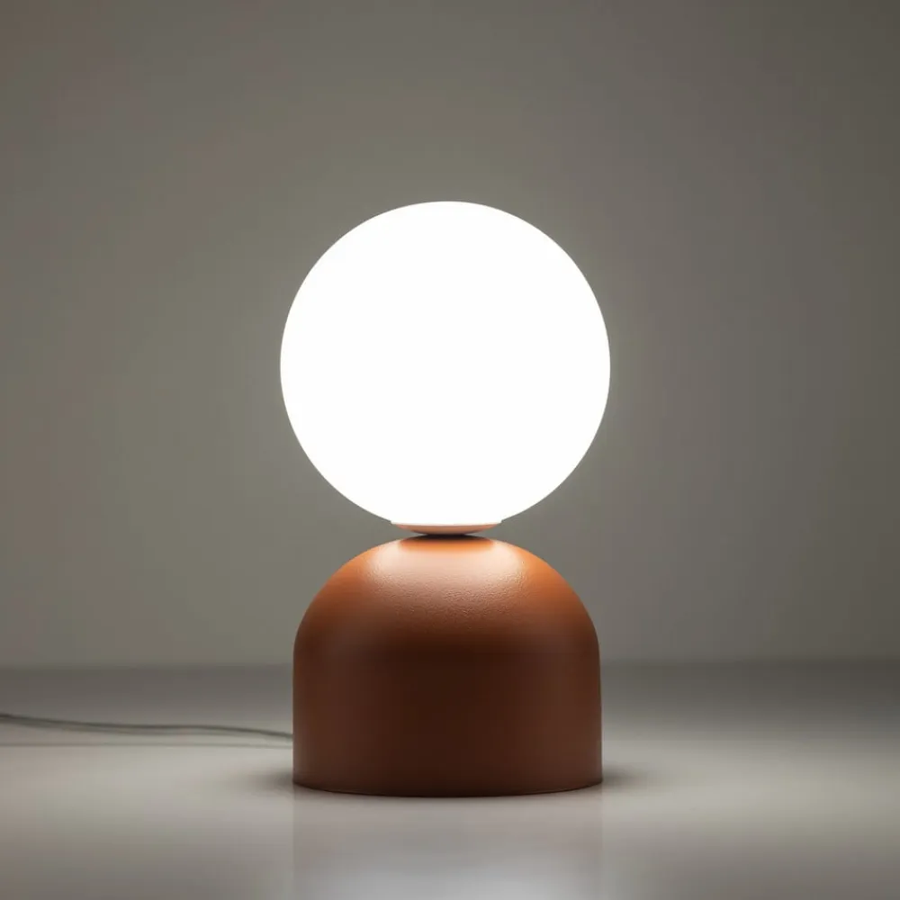 Bordlampen Miki forener moderne design med den stilfulde kombination af metal og glas. Den harmoniske farve i terrakotta og opal giver ethvert rum en varm og indbydende atmosfære. Uanset om den står i soveværelset, stuen eller spisestuen, sætter denne lampe accenter og passer perfekt ind i forskellige indretningsstilarter.
