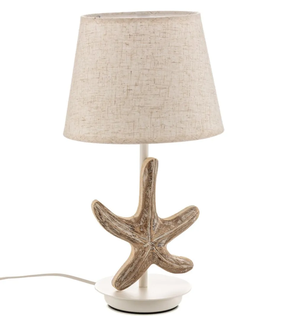 Bordlampen Stellina forener maritimt flair med funktionelt design. Stofskærmen med søstjernedekor giver ethvert rum et særligt præg og skaber en indbydende atmosfære. Denne lampe er fremstillet af en kombination af tekstil, metal og træ og tilbyder ikke kun visuel, men også taktil variation. Den cremehvide farve sikrer en harmonisk integration i forskellige indretningsstilarter, hvad enten det er i stuen, soveværelset eller spisestuen.