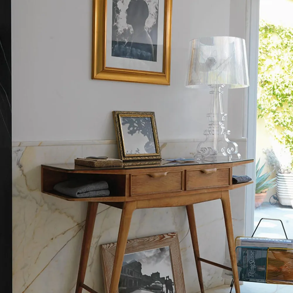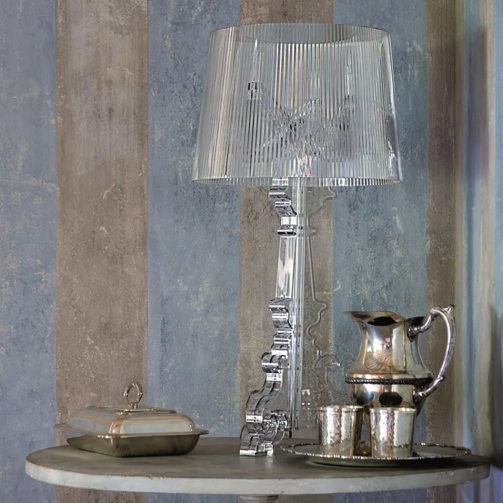 Dæmpbar designer LED-bordlampe Bourgie af Ferruccio Laviani Det stiliserede design af Bourgie-bordlampen, der udelukkende er lavet af plast, kombinerer barokke elementer (base) med klassiske (skærm) og repræsenterer som helhed en harmonisk symbiose af det klassiske og det innovative. Det innovative ved Bourgie er idéen om at producere en bordlampe, der bruger klassiske, barokke mønstre og stilistiske elementer fra det moderne materiale plast. Det italienske firma Kartell er kendt for sine innovationer inden for plast, og lampen er udstyret med en lysdæmper for at øge brugervenligheden. Siden 1950’erne har designere udviklet møbler, husholdningsartikler og lamper af plast for den Milano-baserede virksomhed. I årenes løb har Kartell ikke kun modtaget adskillige designpriser for dette, men har også opbygget sit eget museum, som bevarer og fremhæver virksomhedens kulturelle, idemæssige og materielle arv.