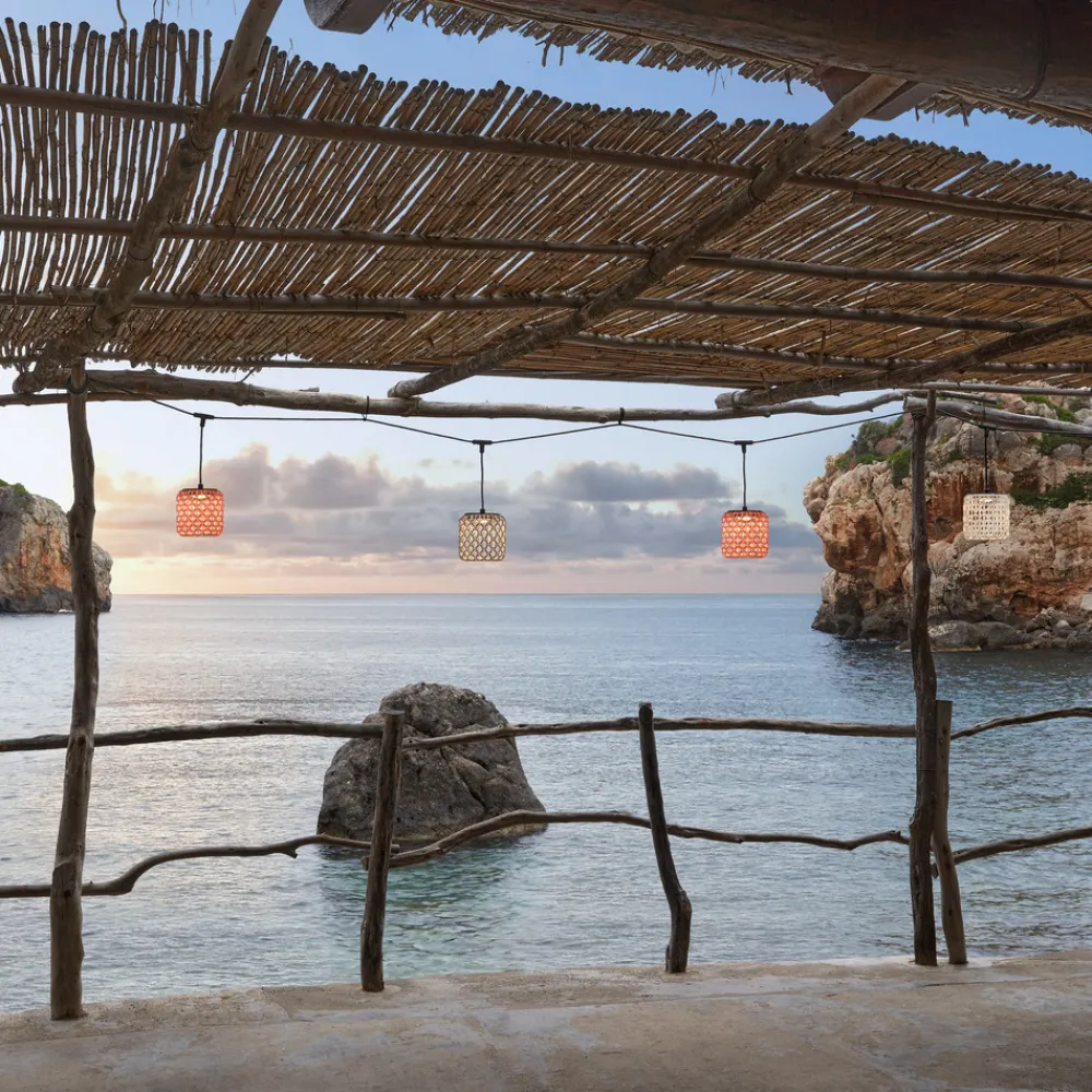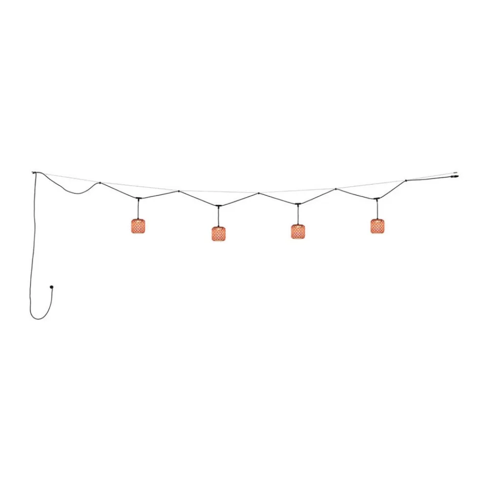 Fire pendler på én ledning: “Lyskæde” Nans til udendørs brugModellen Nans S/16/4L er et meget specielt pendelarmatur, fordi det faktisk er en blanding af en lyskæde og et pendelarmatur, hvor Nans ikke kun har én pendel, men fire. Med denne pendelkæde kan udendørsområdet oplyses på en særlig raffineret og stilfuld måde – uanset om det er på terrassen, på altanen, overdækket eller åbent. Det eneste vigtige er, at der er en stikkontakt i nærheden til at forsyne lamperne med strøm. Nans er en model fra huset Bover i Barcelona. Grundlæggeren Joana Bover har selv designet denne serie af lamper til udendørs brug og bringer dermed stemningen fra sit hjem Barcelona og Middelhavet ind i mange andre menneskers hjem.