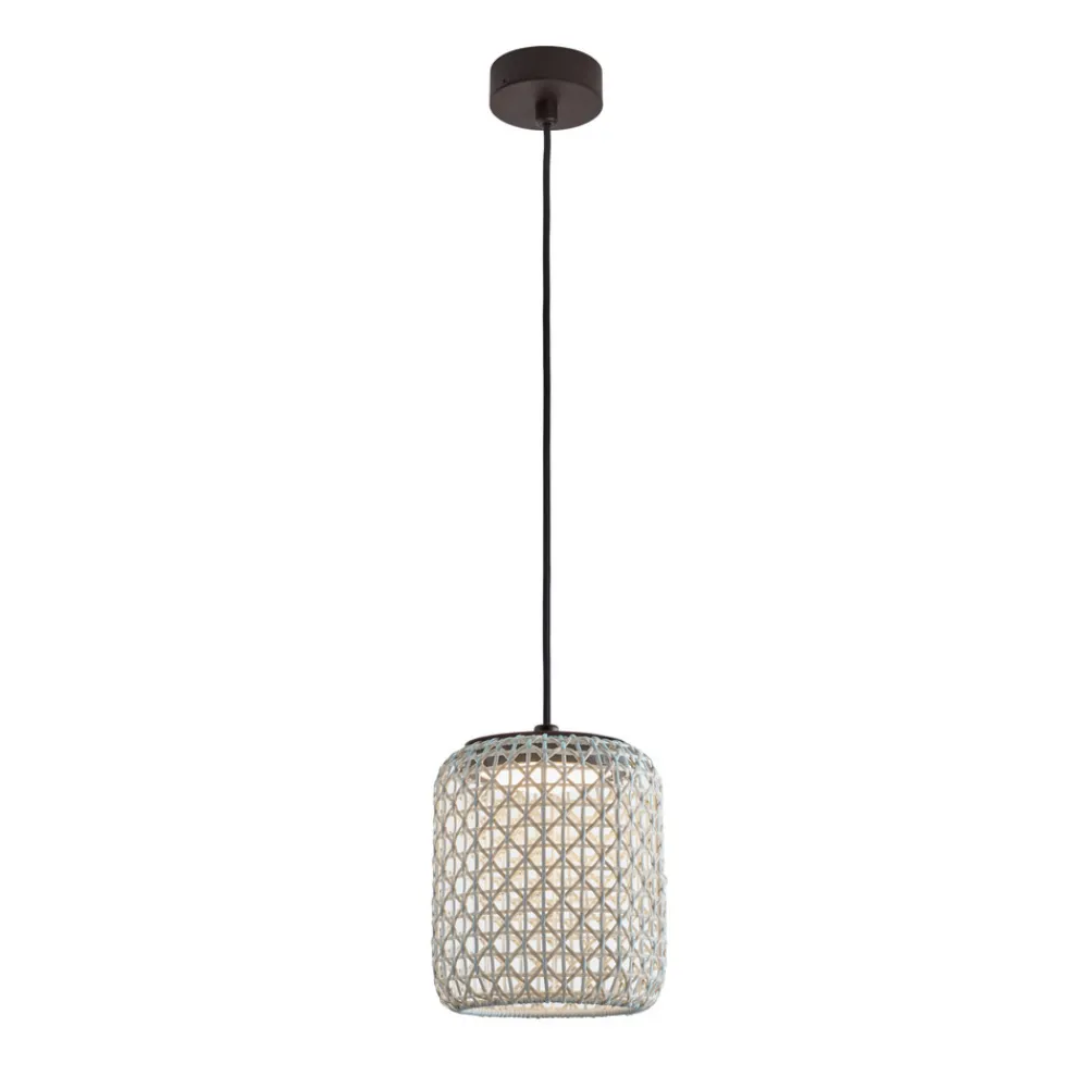 Designer udendørs pendel Nans A med vævet skærmDesignfirmaet Bover, der har base i Barcelona, legemliggør middelhavsstilen med sine Made in Spain-produkter. Pendellampen Nans er designet til udendørs brug, men kan også bruges indendørs. Den cylindriske skærm er vævet af en syntetisk fiber, hvor forskellige farvede tråde er vævet ind i hinanden. Pendlen er triac-dæmpbar, lysdæmperen er ikke inkluderet.
