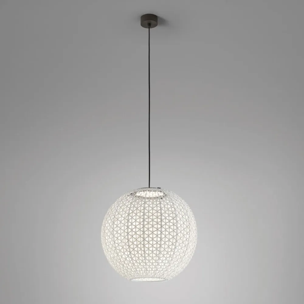 Designer udendørs pendel Nans Sphere S med vævet skærmDesignfirmaet Bover, der har base i Barcelona, legemliggør middelhavsstilen med sine Made in Spain-produkter. Pendellampen Nans Sphere er designet til udendørs brug, men kan også bruges indendørs. Den kugleformede skærm er vævet af en syntetisk fiber, hvor forskellige farvede tråde er vævet ind i hinanden. Pendlen er triac-dæmpbar, lysdæmperen er ikke inkluderet.