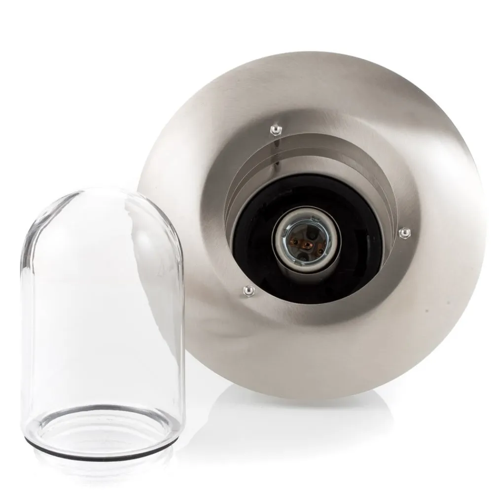 Denne klassiske udebelysning i skandinavisk design fordeler lyset jævnt over alle vigtige udeområder. En robust kuppel i klart glas beskytter lyspæren indeni. Lampen er egnet til sparepærer og opfylder alle betingelser for beskyttelsesklasse IP44. Hverken støv eller vand kan trænge ind.