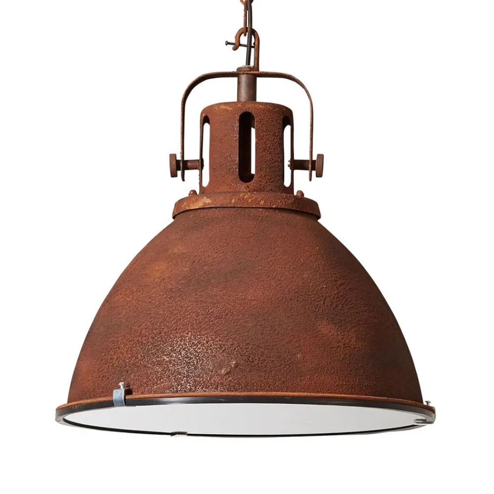 Hængelampen Jesper er en hyldest til de funktionelle lamper fra industritidsalderen og gør indtryk med sit påfaldende industrielle design. Designet lægger vægt på minimalistiske, afrundede former og integrerer flere nostalgiske elementer, herunder et stilfuldt kædeophæng. Den atypiske rustfinish afrunder vintagelooket på en effektfuld måde. For at opnå en jævn fordeling af lyset er skærmens åbning lukket af med en glasdiffusor, der er fastgjort med stilistisk passende klemmer på skærmens kant.