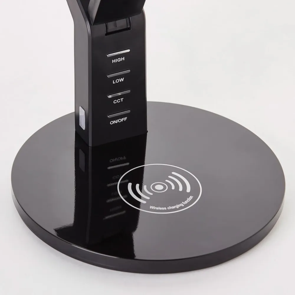 Kaila – moderne LED-skrivebordslampe med induktionsladeflade og justerbar lysfarve Den moderne LED-skrivebordslampe kan justeres fleksibelt og giver det ideelle arbejdslys. Ud over muligheden for gradvist at variere lysfarven fra varm hvid til universal og dagslyshvid, kan lysstyrken også justeres ved hjælp af den integrerede touch-dæmper. Induktionsopladningsfladen, som gør det muligt at oplade din smartphone trådløst, giver reel merværdi. Kalia LED-bordlampen er derfor en ideel kombination af design og funktionalitet.