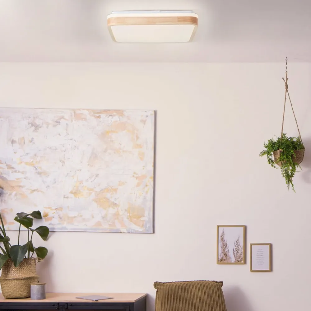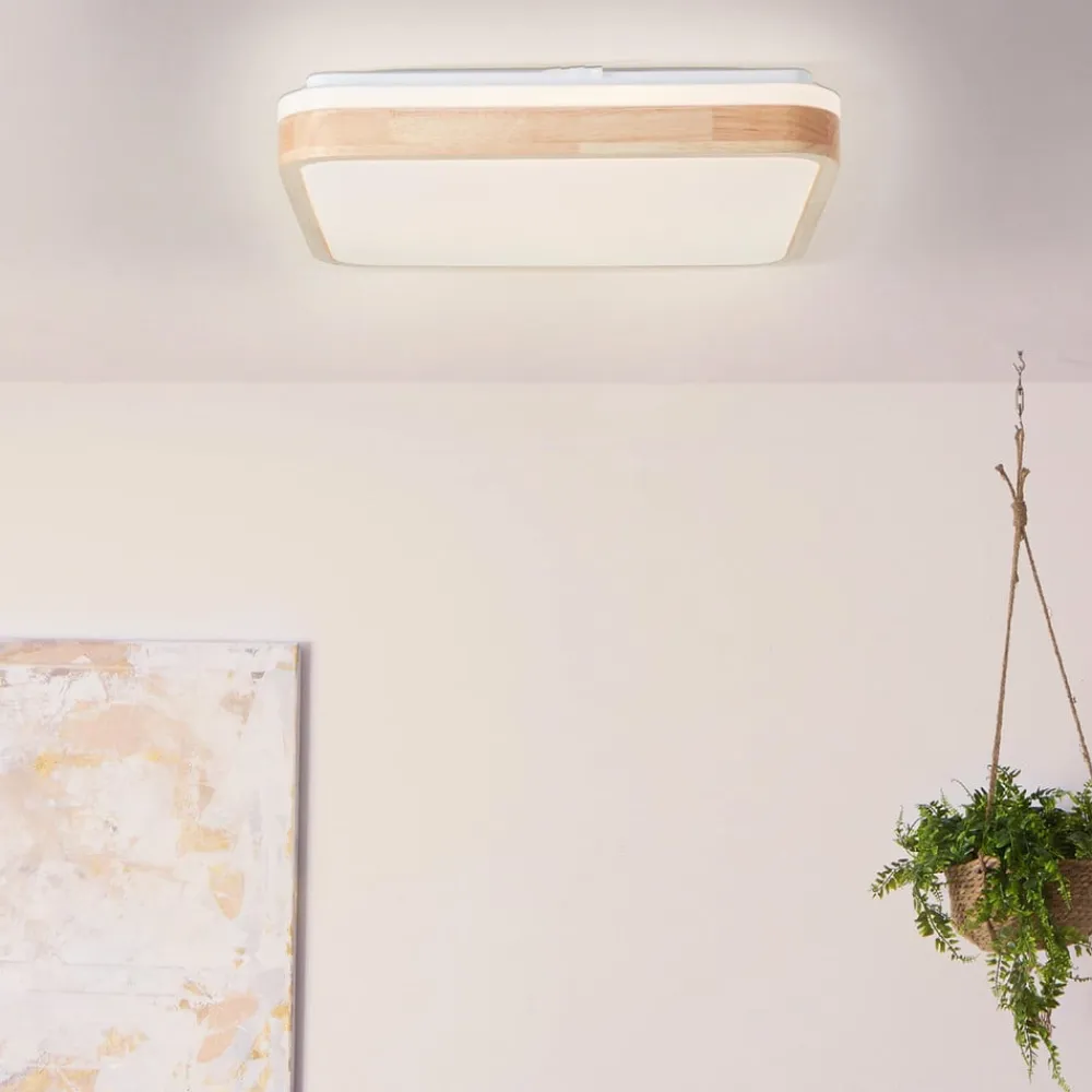 Loftlampe Tumeo, længde 40 cm, lyst træ, metal/træ