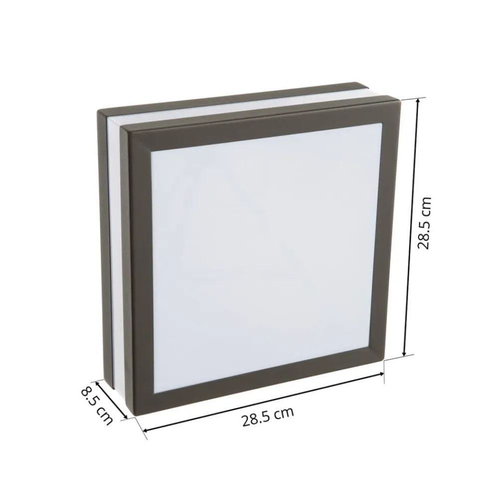 Hvid antracitfarvet Matteo udendørs loftlampe, IP44 Matteo udendørs loftlampe er designet til montering i loftet. Den er beskyttet mod vandsprøjt med en IP44-klassificering, hvilket betyder, at den kan bruges udendørs uden problemer. Rammen omgiver den hvide plastdiffusor og er lavet af antracitfarvet rustfrit stål – det giver loftlampen et elegant udseende i høj kvalitet og giver også blændfrit lys. Rammen skaber et diskret lysmønster, der skiller sig ud i omgivelserne og skaber en tiltalende atmosfære. Matteo er ideel til belysning af carporte, garager, baldakiner, facader, terrasser og balkoner og kan også monteres på væggen, hvis det er nødvendigt. Armaturet er udstyret med to E27-pærer, som kan købes som tilbehør.