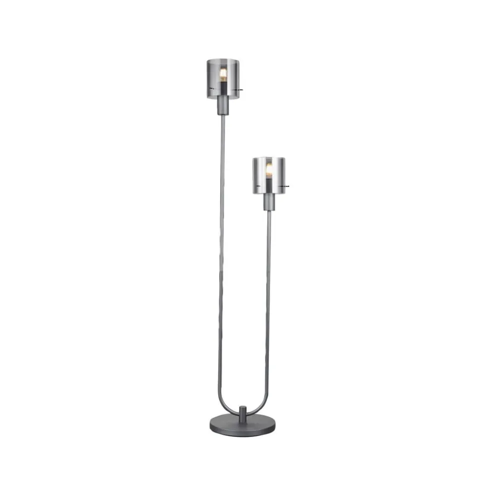 Riffelini gulvlampe, højde 152 cm, røggrå, 2-lys, glas