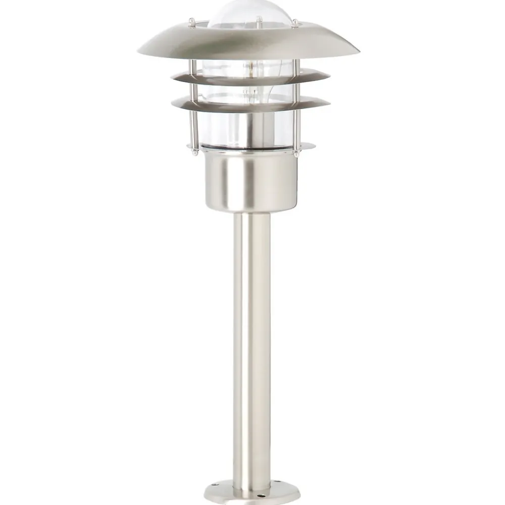 Sokkellampen Terrence er perfekt til at oplyse udendørsarealer. Den specielle form gør det muligt at opnå en god belysning uden at blænde, hvilket sikrer et behageligt lys. Der kan også bruges sparepærer, hvis det er nødvendigt. Lampen er beskyttet mod vejrpåvirkninger med en kuppel af klart glas og opfylder dermed IP44-beskyttelsesstandarden.