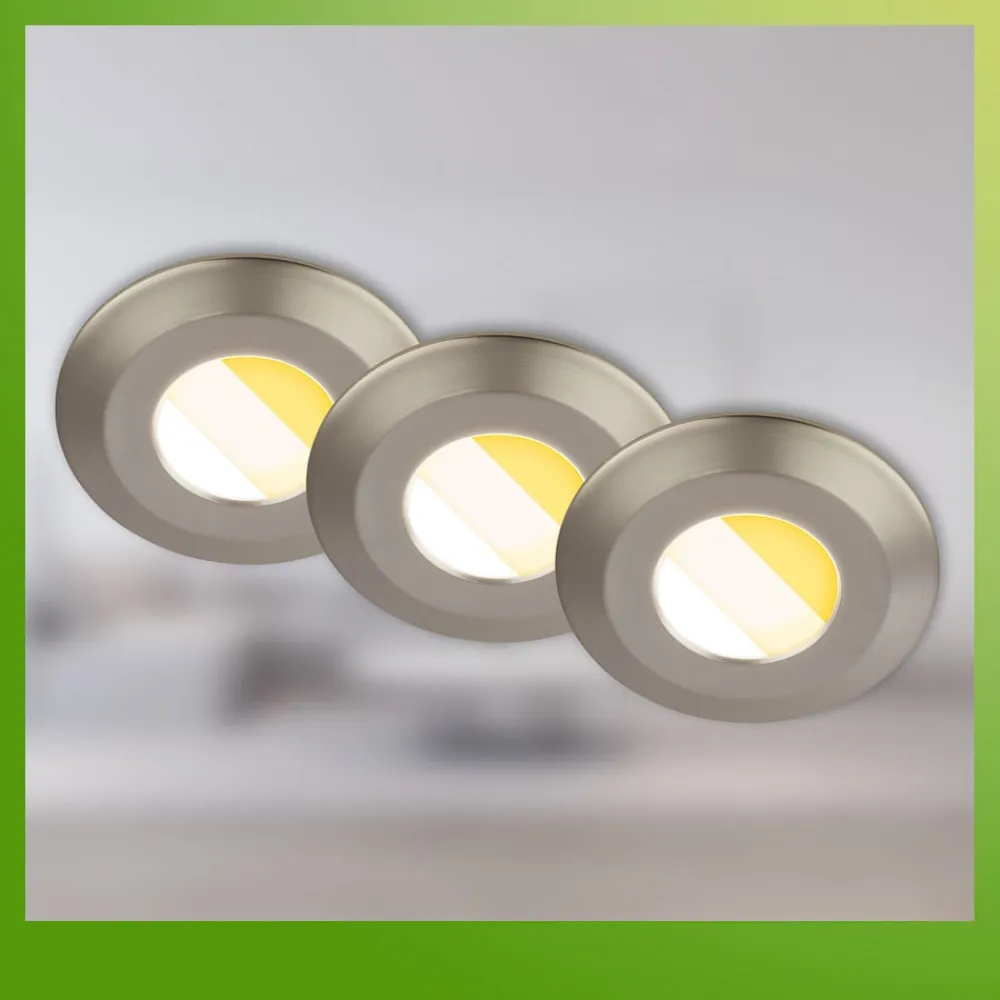 Briloner Klira indbygningslampe, mat nikkel, Ø9cm, IP44, dæmpbar, 3 stk