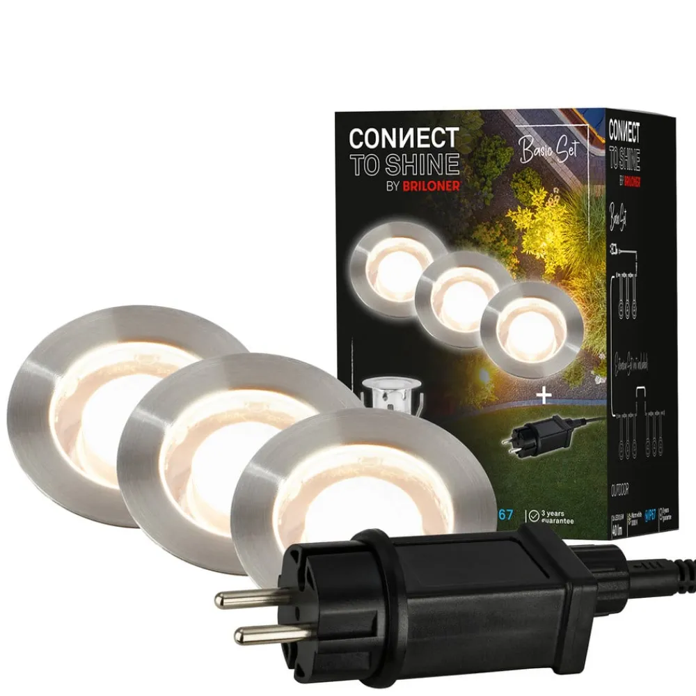Dette sæt med tre varmhvide LED-indbygningsspots er et komplet sæt til Briloners 12 V udendørslampe-system. De runde spots har rustfrit stålhus og plastdæksel og leveres med passende tilslutningskabler med stik til 12 V-systemet. En udendørs stiknetadapter til 230 V-tilslutning til stikkontakten medfølger. Afhængigt af behovet kan yderligere komponenter (se tilbehør) eller lamper fra 12 V-systemet tilføjes.