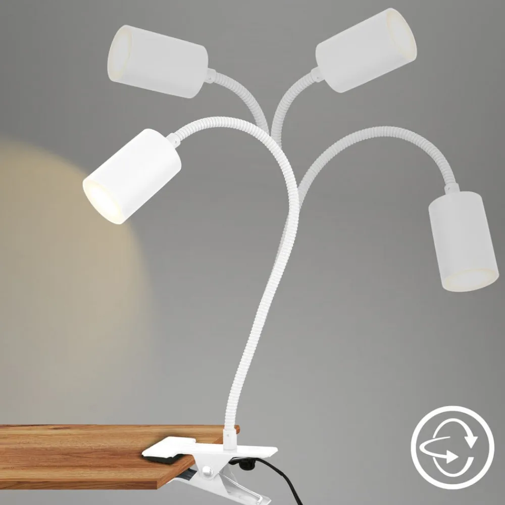 LED-klemmelampe Fleks, hvid, fleksibel, metal