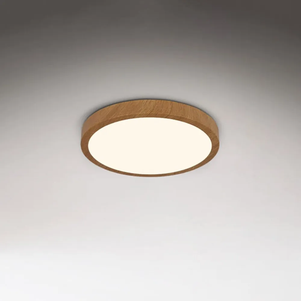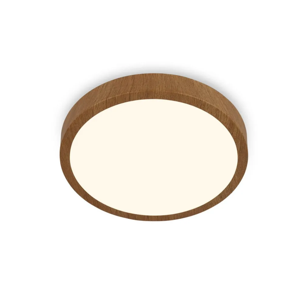 Flad LED-loftlampe Runa Wood med træfarvet metalramme