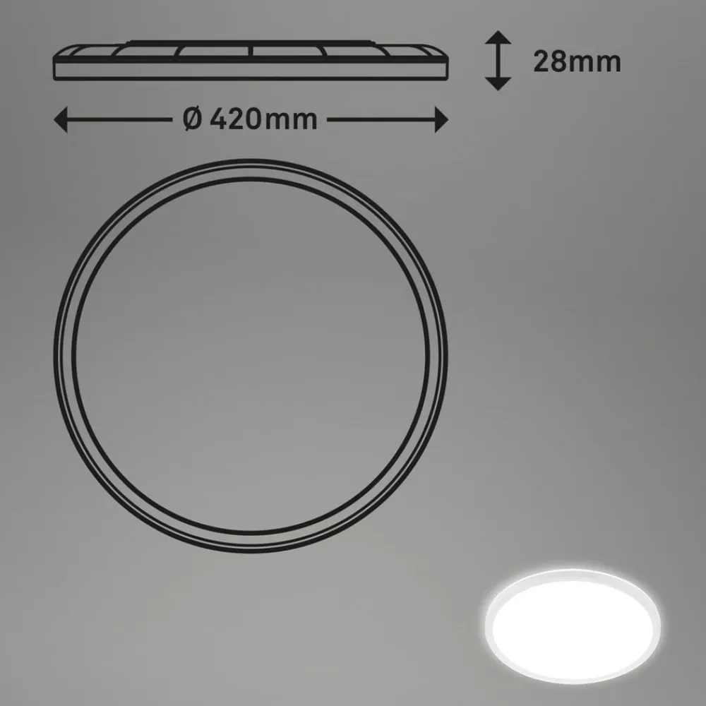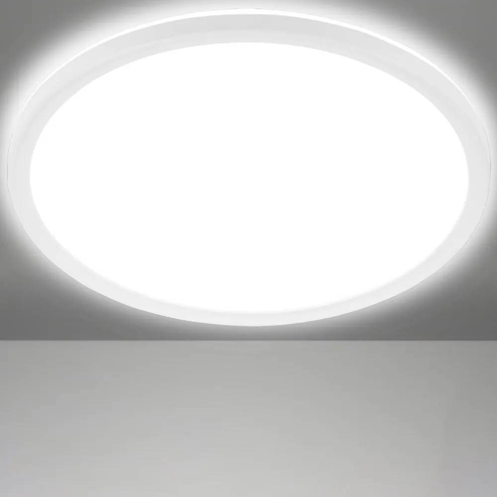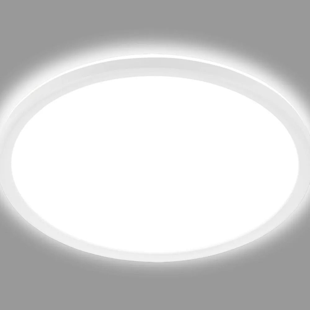 Dette runde, meget flade LED-panel er udstyret med et LED-kort, hvis lys skinner meget jævnt nedad gennem en diffusor og sikrer den generelle belysning af et rum. En del af lyset udsendes også opad, så der skabes en effektiv lysring og dermed effektiv indirekte belysning omkring lampen. Den runde lampe i sit enkle, tidløse og iøjnefaldende design med en hvid ramme passer ind i ethvert interiør og enhver indretningsstil. Takket være den universelle lysfarve på de indbyggede lysdioder er lyset ideelt til brug i køkkenet eller studiet.