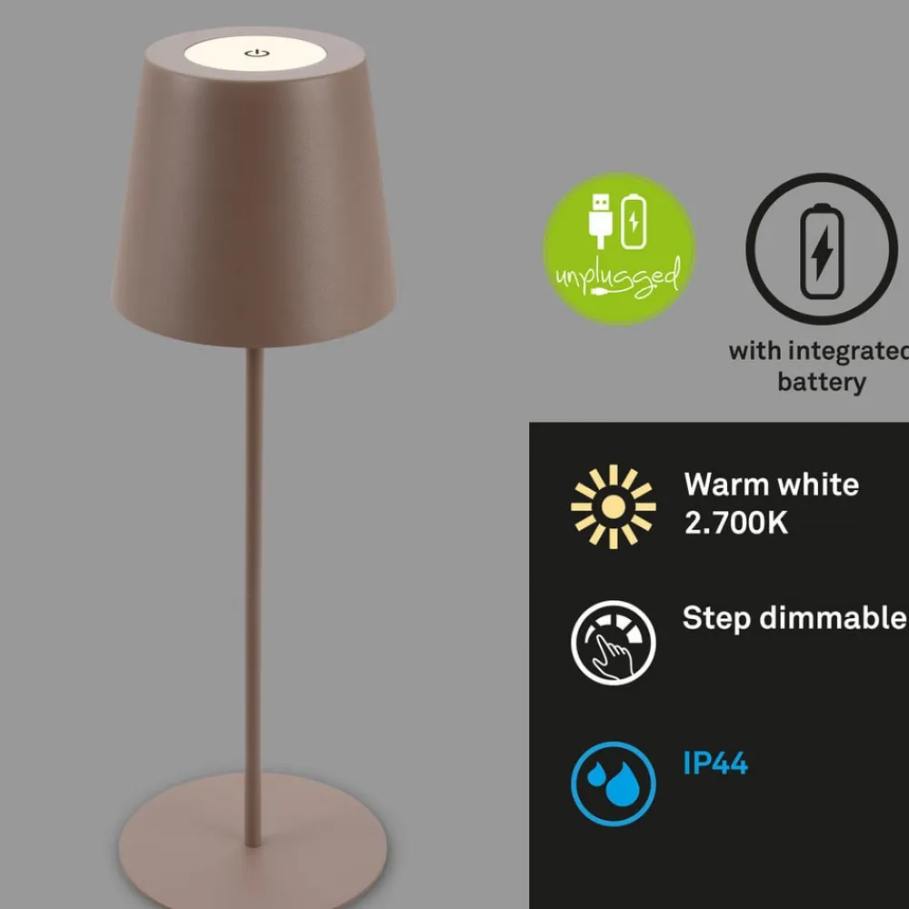 Briloner Terrassebelysning|Bordlamper>LED-bordlampe 7508012, brun, 2.700 K IP44 touchdæmper