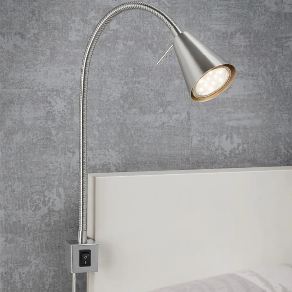 LED-væglampe Tuso med fleksibel arm og plade til montering på sengen