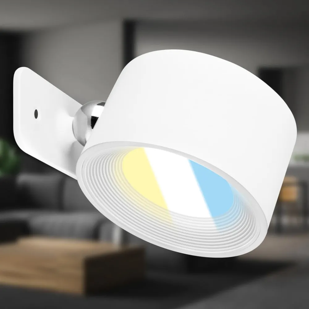 Tari LED-væglampe med lysfarvestyring og touchdæmper Oplev en ny dimension af belysning i din bolig med Tari LED-væglampen. Den integrerede CCT-funktion (2700K / 4000K / 6500K) gør det muligt at tilpasse lysfarven individuelt til den ønskede atmosfære – fra varme toner til en hyggelig aftenstemning til køligere nuancer, der fremmer koncentration og aktivitet. Takket være den integrerede berøringsdæmper kan lysstyrken på den permanent installerede LED-lyskilde justeres i tre trin (100 %, 70 %, 20 %) med kun ét tryk. Det integrerede genopladelige batteri sikrer fleksibilitet med hensyn til placering og gør installationen uafhængig af faste strømtilslutninger.