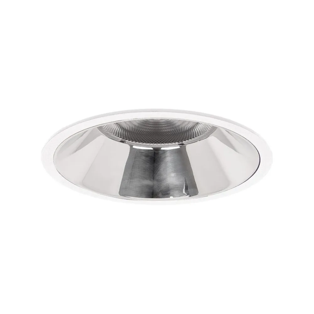 Indbygget LED-spot Apollo Maxi med glat reflektor, rund, DALI-dæmpbar Den runde Apollo Maxi LED-downlight kan monteres i loftet i mange forskellige rum uden brug af værktøj ved hjælp af monteringsfjedre. Den glatte, sølvfarvede reflektor med rotationssymmetrisk, smal, bredstrålende lysfordeling sikrer en klar belysning, der udsender optimalt lys gennem den transparente plastafdækning, – særlig god farvegengivelse – farvegengivelsesindeks CRI > 90 – levetid L80/B10 ved 25 °C: 50.000 timer, levetid L80/B50 ved 25 °C: 50.000 timer – husmateriale: aluminium/glas/plast – tilladt omgivelsestemperatur (ta): -20 °C – +25 °C – med elektronisk forkobling, DALI-dæmpbar