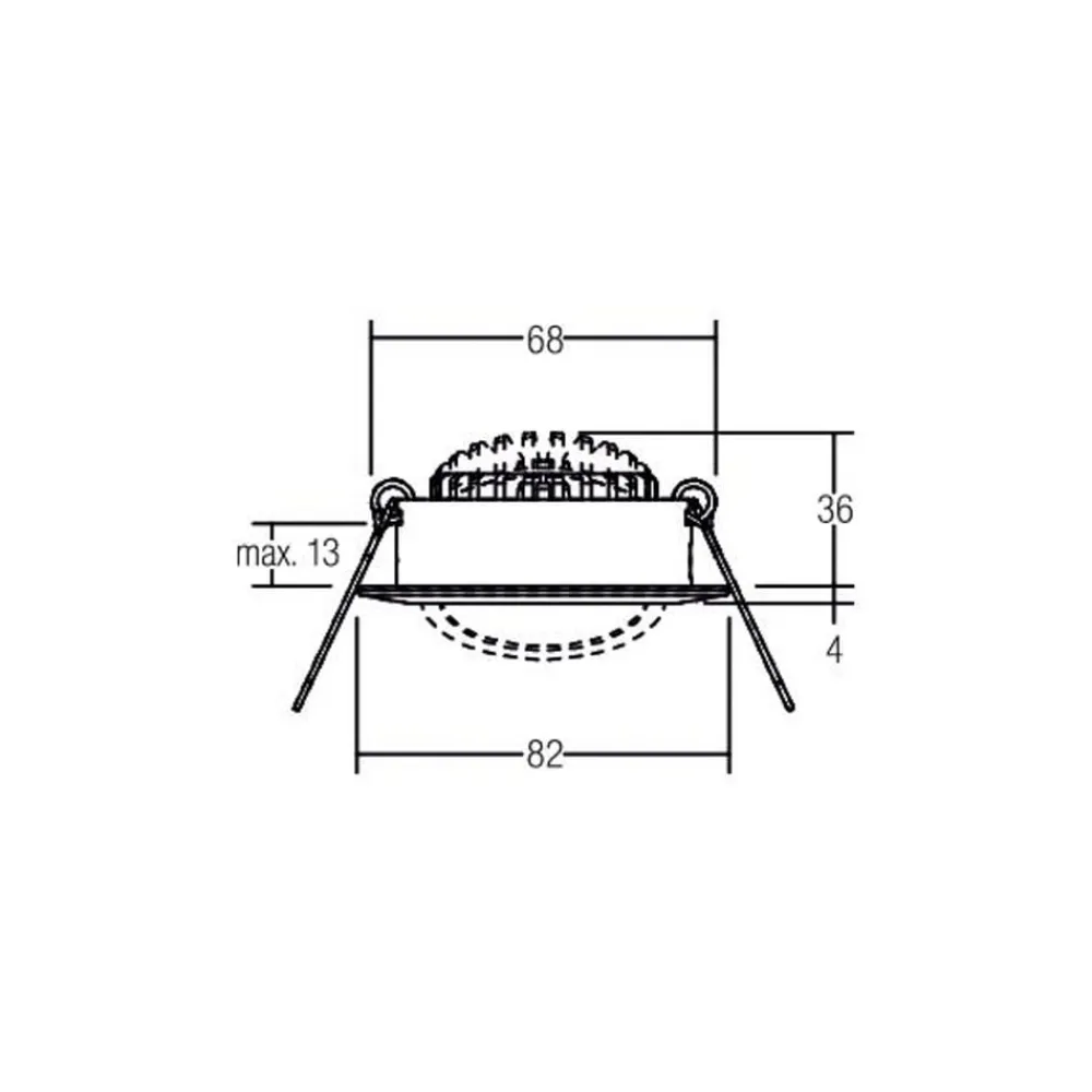 Rund BB03 LED-indbygningsspot, drejelig, med tilslutningsboks og LED-driver BB03 LED-indbygningsspot, fremstillet af aluminium i en rund form, er udstyret med varmhvide LED’er. De er placeret i et armaturhoved, der kan bevæges til alle sider, så lyset kan rettes efter behov. Udstyret med en sølvfarvet reflektor med rotationssymmetrisk, dyb lysfordeling og en transparent polykarbonatafdækning fordeles lyset optimalt. Det enkle udseende harmonerer med moderne indretningskoncepter; BB03 er den ideelle downlight over tekøkkenet og i hotelkorridorer. Den kan installeres uden værktøj takket være installationsfjedre og er udstyret med en tilslutningsboks – inklusive ikke-dæmpbar LED-konverter – udstrålingsvinkel: 38° – drejeområde: 30° hele vejen rundt – må ikke dækkes med varmeisoleringsmateriale
