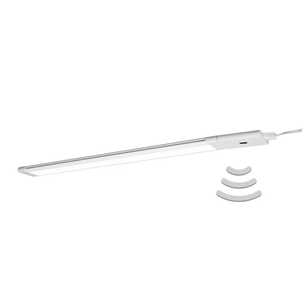 underskabslampe imponerer med sin homogene lysdiffusion og den intelligente lyssensor. Lampen kan tændes, slukkes og dæmpes med kun korte håndbevægelser. Aluminiumshuset har en hvid finish, så lampen kan integreres stilfuldt i hjemmets interiør.