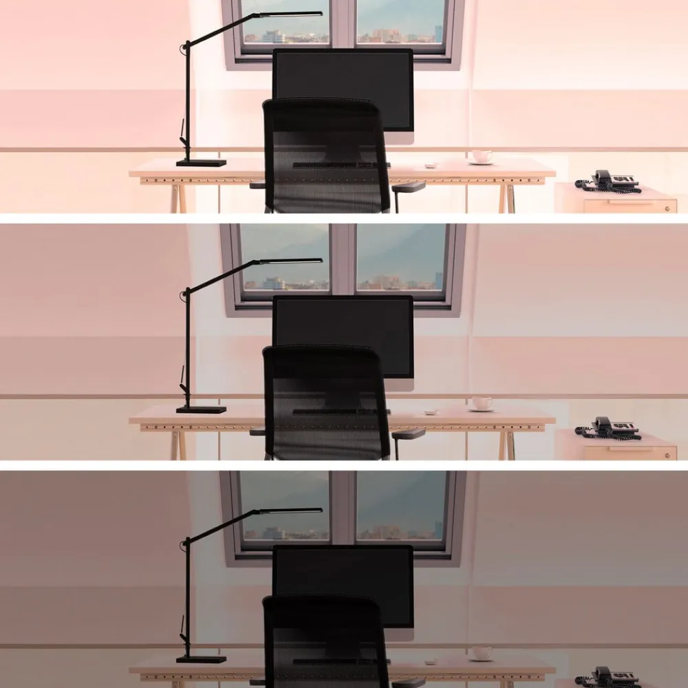 Cala LED-skrivebordslampe med skiftende lysfarve og lysdæmper Perfekt lys til hjemmekontoret: Den moderne Cala LED-skrivebordslampe giver ideel belysning til hjemmearbejdspladsen og maksimal lyskomfort. Et særligt highlight: Takket være Switch Tone-teknologien kan LED-lyset skifte farve i 3 trin ved hjælp af touch-kontrolpanelet. Mens hyggeligt varmhvidt lys indbyder til afslapning, er køligt hvidt dagslys ideelt til arbejde. Det betyder, at du kan indstille præcis den rigtige lystone til ethvert humør. Skrivebordslampen kan også dæmpes via kontrolpanelet, så du nemt kan justere lysstyrken, så den passer til dine behov. Så kan du altid skabe præcis den stemning, der passer til dig. LED-skrivebordslampen har ikke kun praktiske funktioner, men er også et smukt blikfang takket være det moderne, sorte look. Takket være stativet kan lampen placeres nemt og fleksibelt på ethvert skrivebord – Farvejusterbar LED-skrivebordslampe i 3 trin via touch-kontrolpanel: 3000 K / 4000 K / 6500 K – Kan dæmpes – Meget lavt energiforbrug