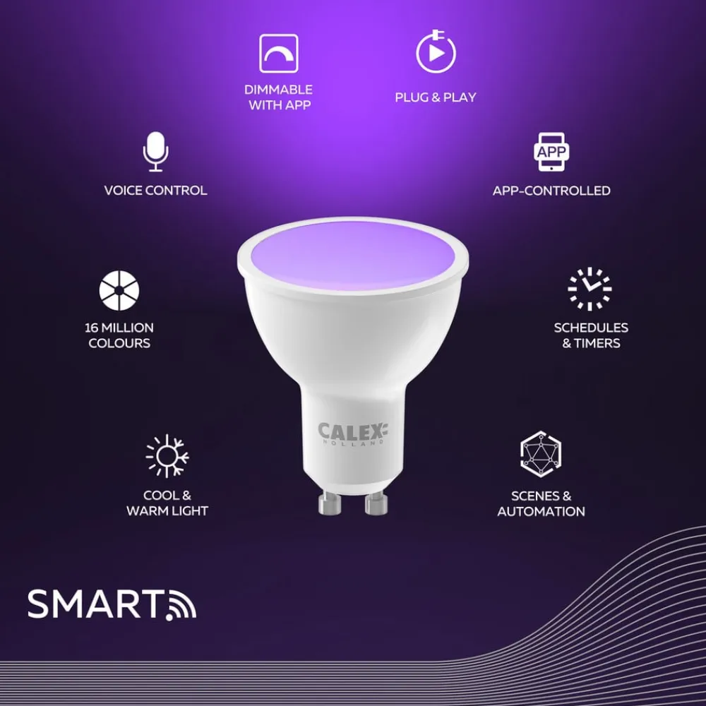 Calex Smart LED-reflektorpære GU10 4,9W CCT RGB