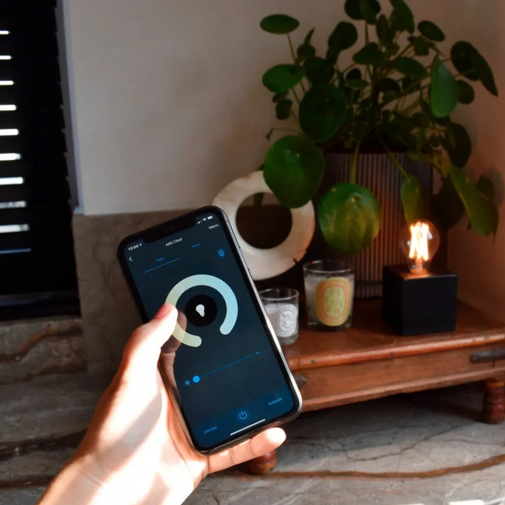 LED-filamentpære E27 A60 med valgbar farvetemperatur via app Denne LED-lampe med E27-sokkel, klart glas og filamentpærer er smuk og intelligent. Ved hjælp af Calex-appen, som kan downloades gratis til Android- og iOS-enheder, kan denne lampe tændes og slukkes, dæmper og dens lysfarve kan justeres kontinuerligt fra en meget varm 1.800 K til en varmhvid 3.000 K. Forbindelsen sker via WLAN. Særlige funktioner / kompatibilitet: – valgbart hvidt lys varmhvid 1.800 K til varmhvid 3.000 K – kan styres via Calex-appen (gratis til Android og iOS) – stemmestyring mulig med Amazon Alexa, Google Assistant og Siri Shortcuts – dæmpbar via app eller stemmekommando – WiFi 2,4 GHz