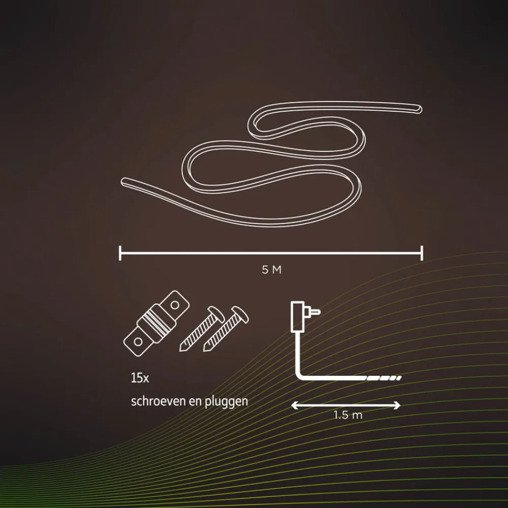 Kan styres via app: LED-strip Smart Outdoor Striplight, 5 meter, RGBW Den fem meter lange LED-strip Smart Outdoor Striplight kan tændes og dæmpes ved hjælp af den gratis Calex-app. Derudover kan der indstilles over 100 lysfarver og varmhvidt lys (3.000 K). Timere og foruddefinerede lysscener kan også indstilles via appen. De, der foretrækker at styre lyset ved hjælp af stemmekommandoer, kan nyde godt af kompatibilitet med Amazon Alexa, Google Assistant og Siri Shortcuts. En Calex Smart Outdoor Link Bluetooth Mesh Gateway er nødvendig som basis (se tilbehør). Den er integreret via Wi-Fi, så der skal være et Wi-Fi-netværk til rådighed. Gatewayen forbindes derefter til Smart Outdoor Striplight via Bluetooth. Tekniske funktioner: – Kan styres via Calex-appen (gratis til Android og iOS) – Over 100 lysfarver og varmhvidt lys (3.000 K) kan indstilles – Timer og forudindstillede scener kan indstilles via appen – Stemmestyring mulig med Amazon Alexa, Google Assistant og Siri Shortcuts – Dæmpbar via app eller stemmekommando Bemærk: En Calex Smart Outdoor Link Bluetooth Mesh Gateway (se tilbehør) og et eksisterende Wi-Fi-netværk er påkrævet for intelligent lysstyring.