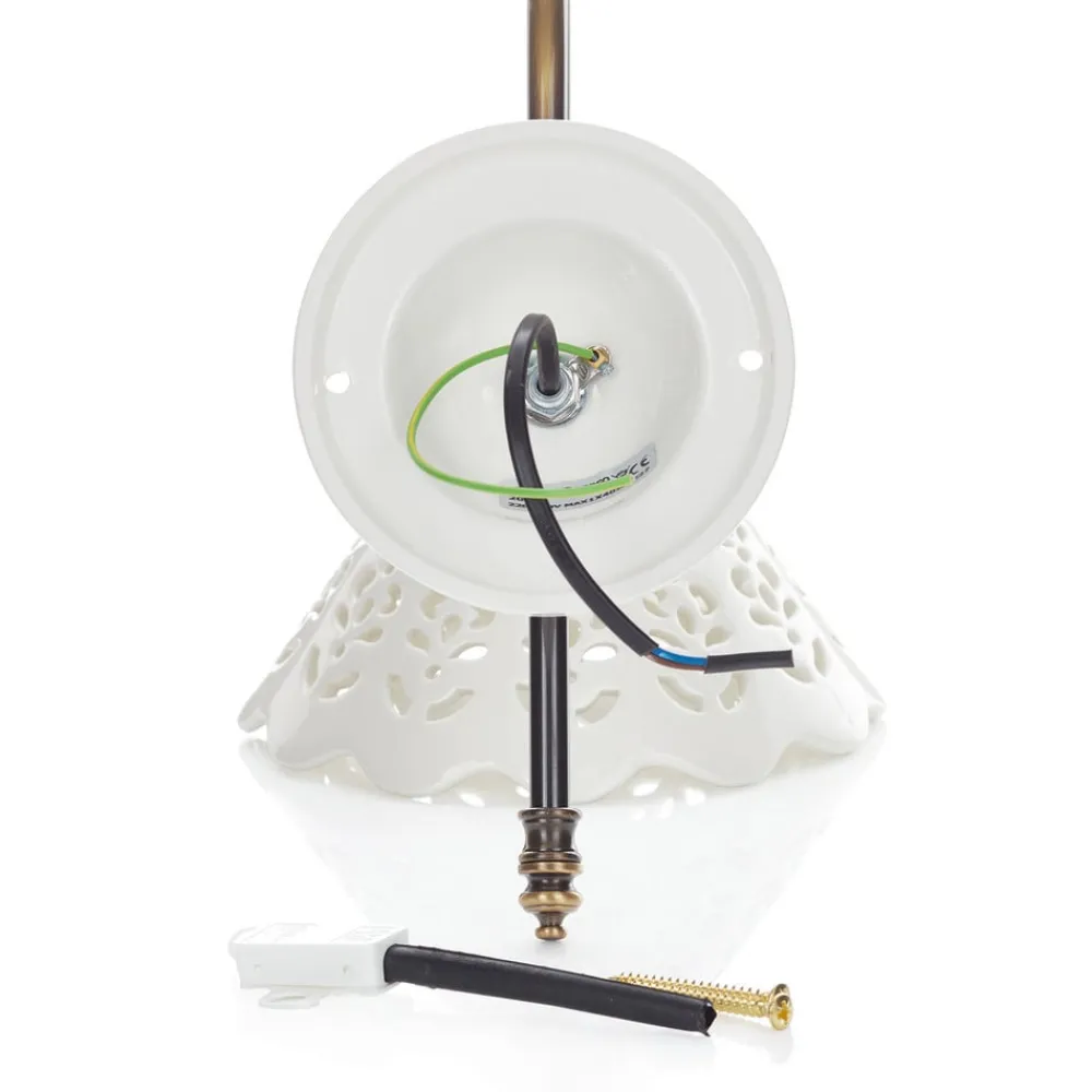 Formfuldendt keramisk væglampeVæglampen Portico er med sit romantiske look bedst egnet til indretninger i landlig stil. Den hvide keramikskærm sammen med den buede metalarm giver den et formfuldendt udseende. Det perforerede mønster i skærmen skaber et flot lysmønster på væggen, og skærmens bølgede finish bidrager også til et harmonisk helhedsbillede.