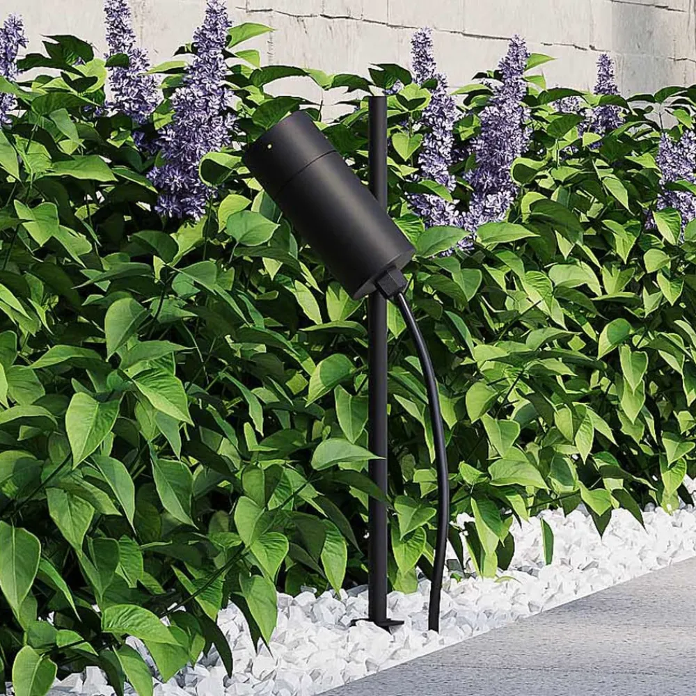 Chopa LED jordspydslygte med justerbart spotlys Hovedformålet med Chopa jordspydslygte er at give orientering eller at sætte spotlys på bestemte områder i haven. Det cylindriske hoved er monteret på en tynd stang og er lavet af aluminium i en enkel matsort finish. Spotlightets højde på stangen kan justeres individuelt og fastgøres med en skrue på leddet. Den kan også drejes og vippes helt. Takket være den store fleksibilitet bliver hjemmets have eller offentlige park et højdepunkt selv i aftentimerne og indbyder til at blive hængende.