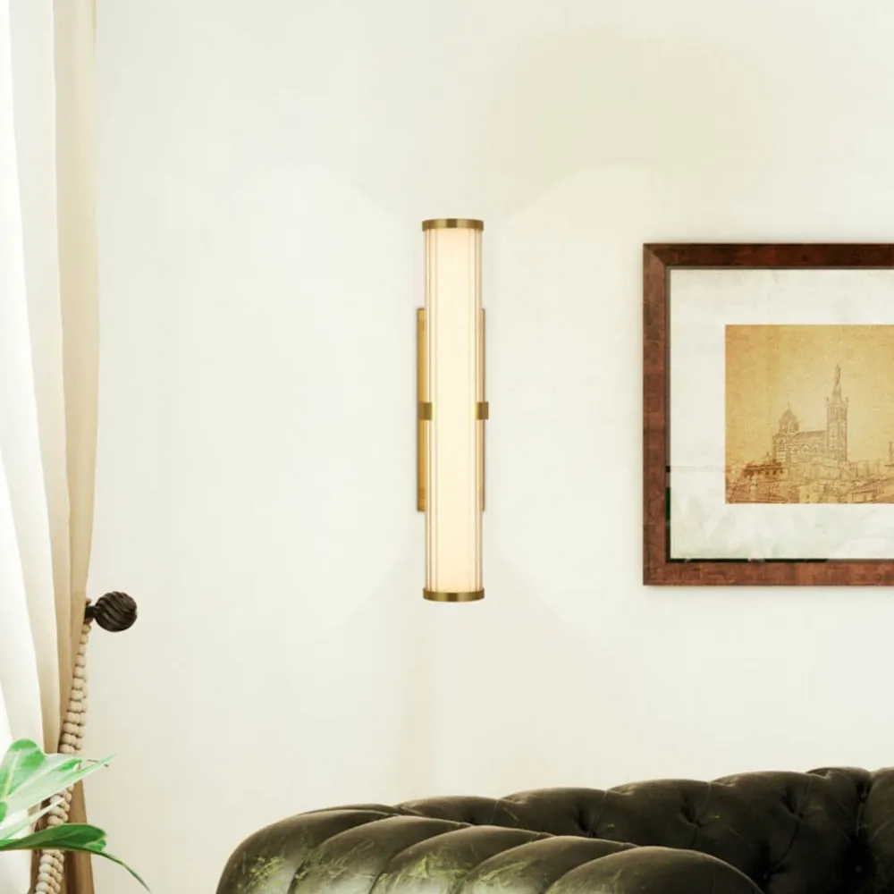 Clamp LED-væglampe, guld/hvidt stål, glas, IP44