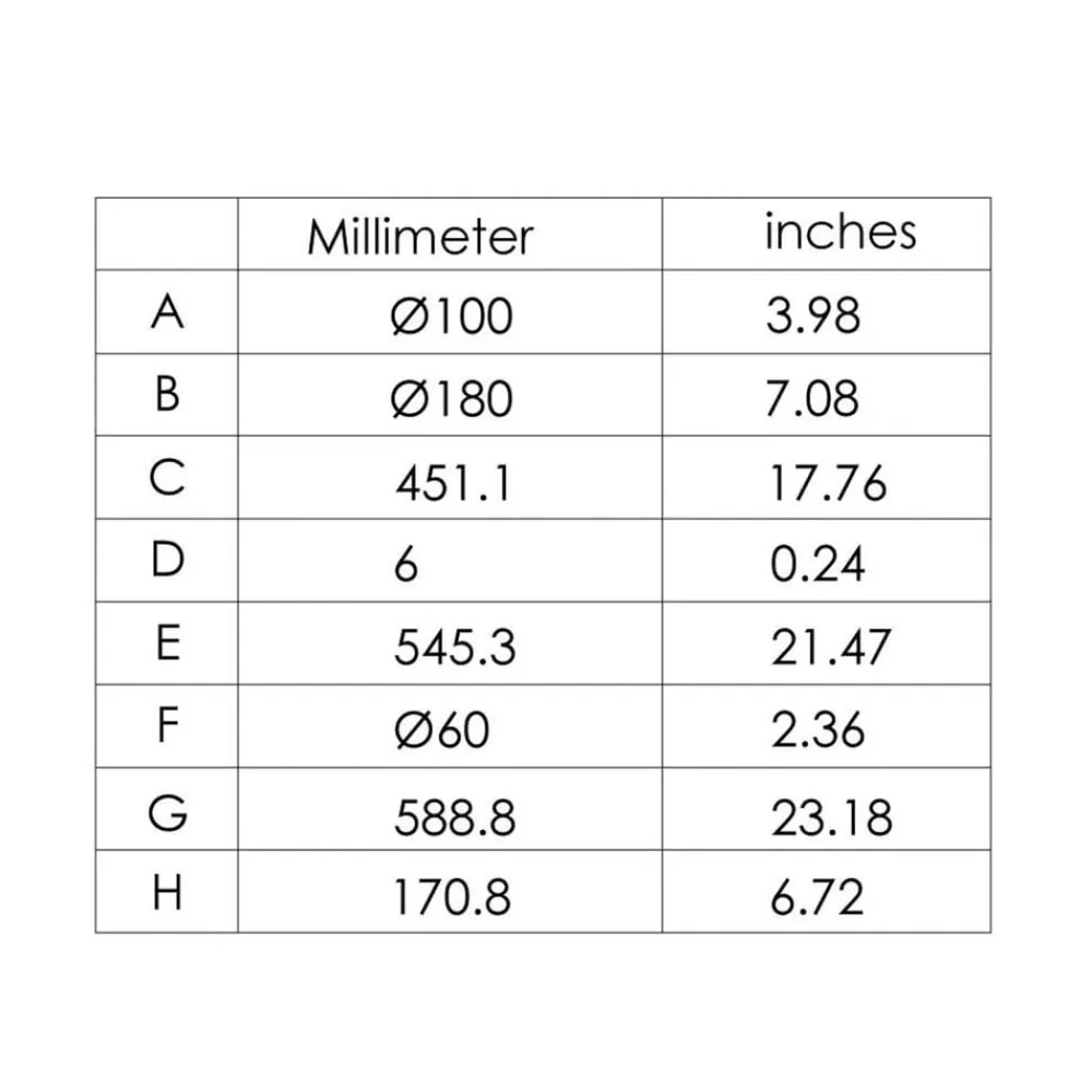 - Ø hoved 10 cm; samlet længde af overarm 59 cm