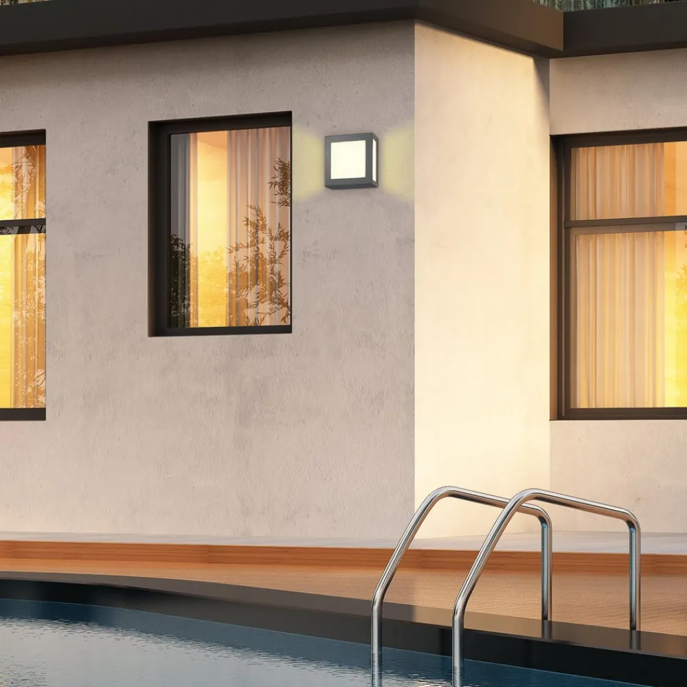 Den kvadratiske udendørs væglampe Aquo Legendo Mini imponerer med sit moderne design, den høje kvalitet på de anvendte materialer og den indbyggede PIR-sensor. Sidstnævnte sikrer orientering og sikkerhed udenfor og er ideel til områder, der ofte opsøges. Uanset om det er ved selve indgangen til huset, ved garagen eller langs en sti, sørger den udendørs væglampe lys Aqua Legendo Mini altid tilstrækkeligt lys og en god lysstyrke. Forsiden og siden af diffusoren er fremstillet af opalglas med en indsat lysgennemtrængelig folie. Den sørger for at man ikke kan se lyskilden udefra, men sikrer samtidig en ensartet spredning af lyset, der ikke blænder. Lampens legeme er desuden af rustfrit stål af høj kvalitet.