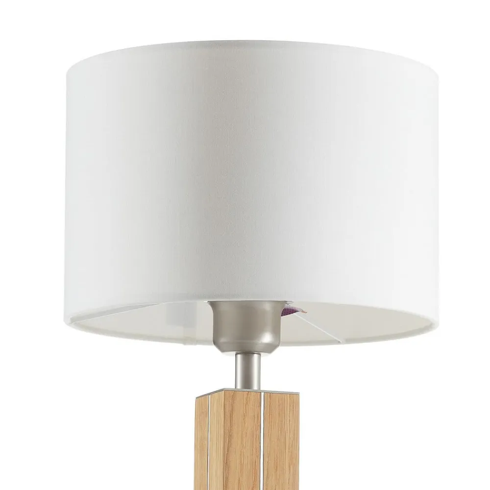 Firkantet bordlampe af træ Dana med en rund tekstilskærm